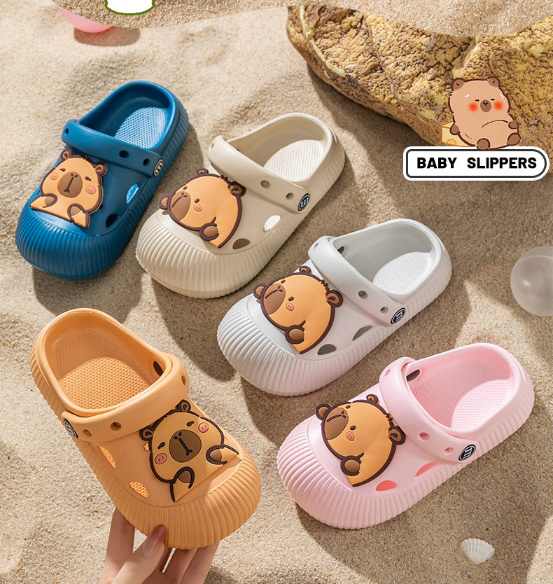 새로운 EVA 어린이 샌들 capybara 귀여운 만화 부드러운 바닥 겉옷 소년 소녀 랩 헤드 두 착용 구멍 신발 도매