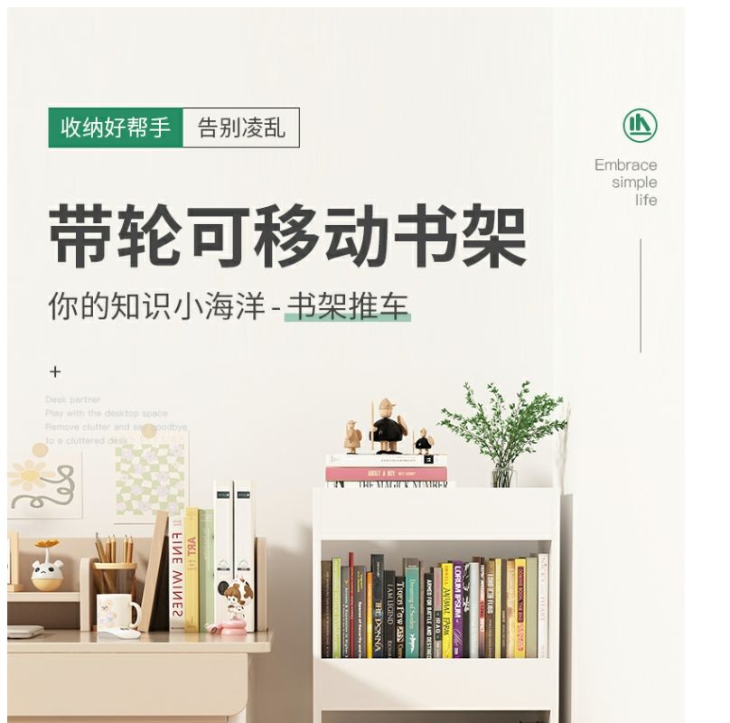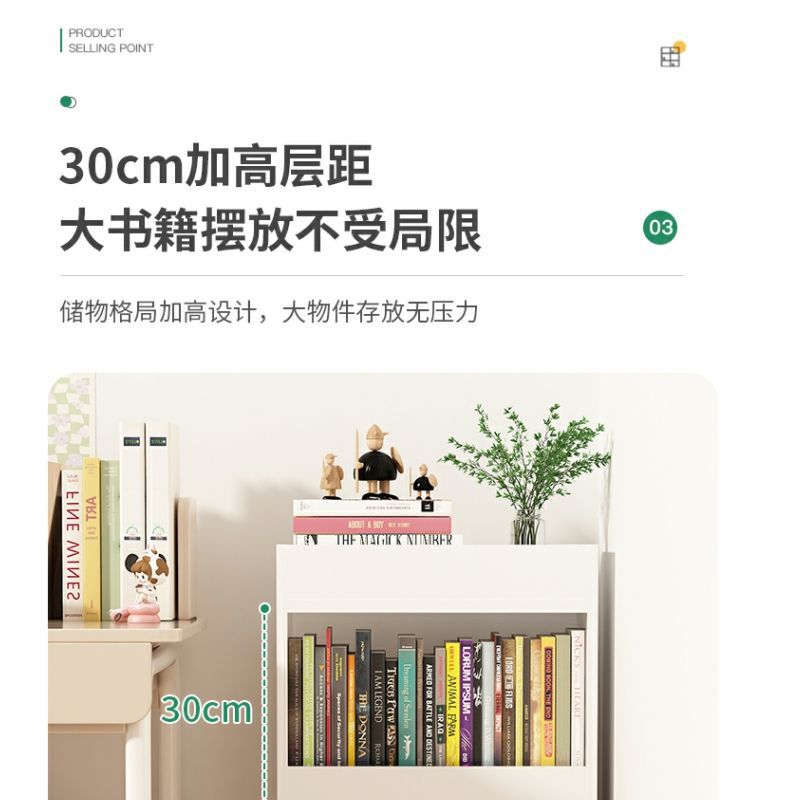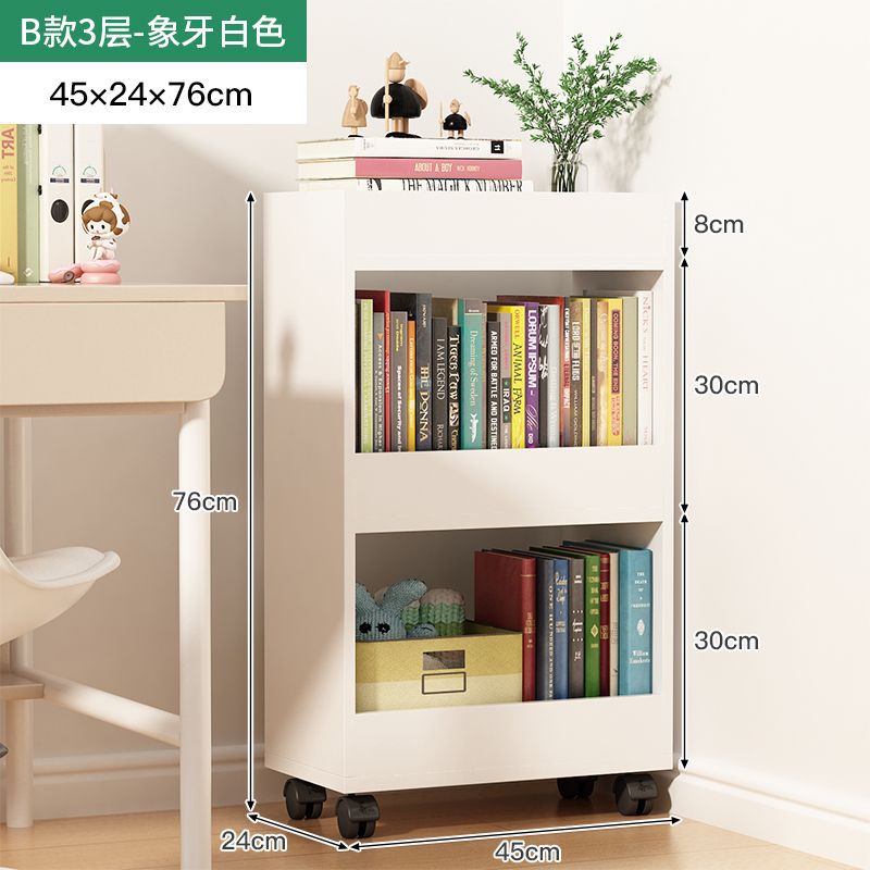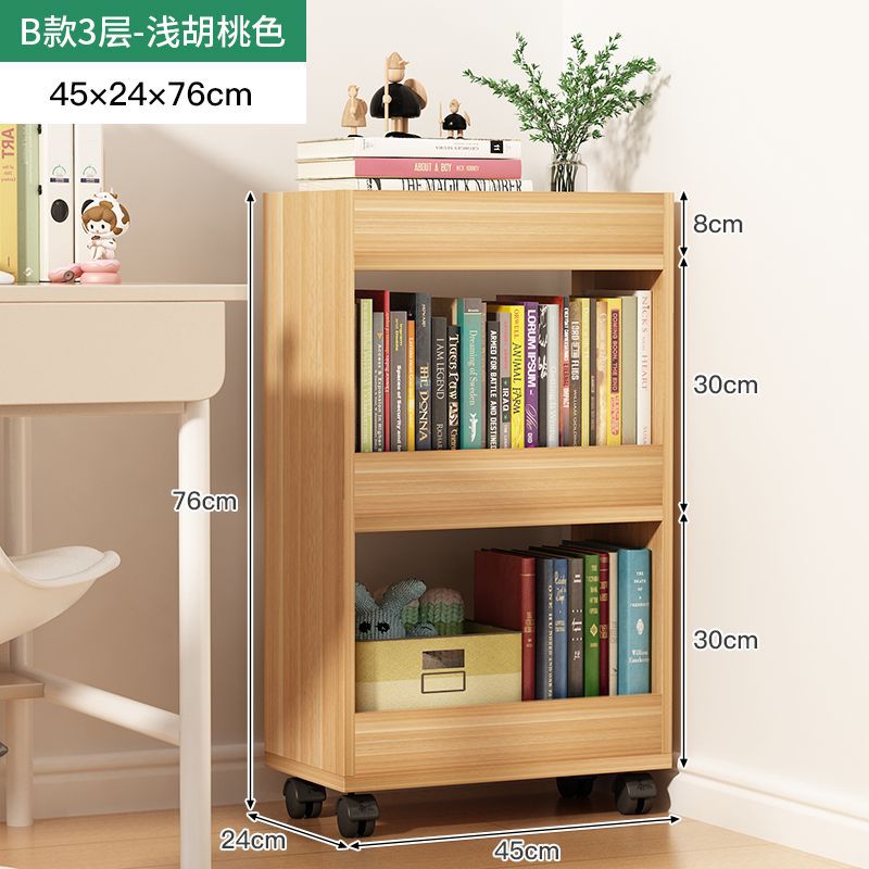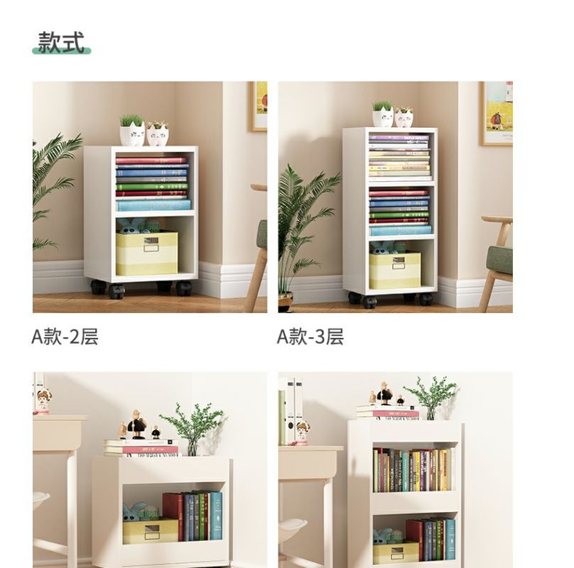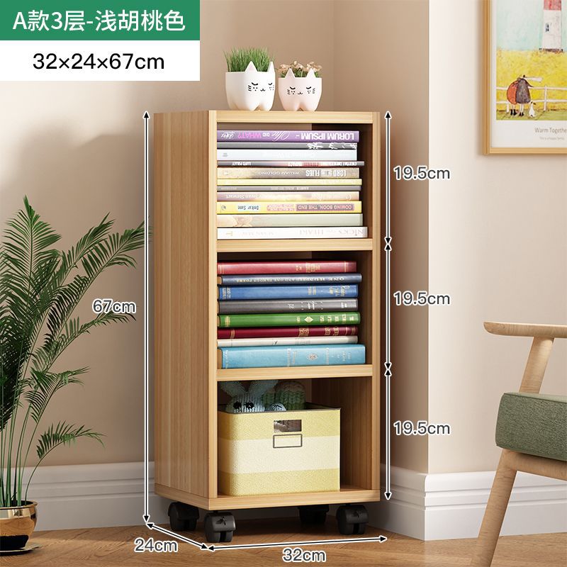 간단한 책장 바닥 보관 랙 바퀴가있는 어린이 책장 가정용 거실 침실 학생의 이동식 보관 랙스토어 가기