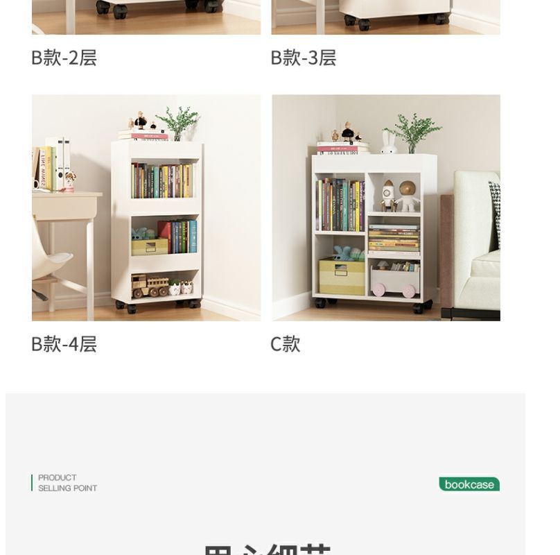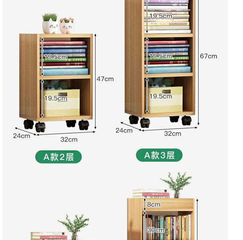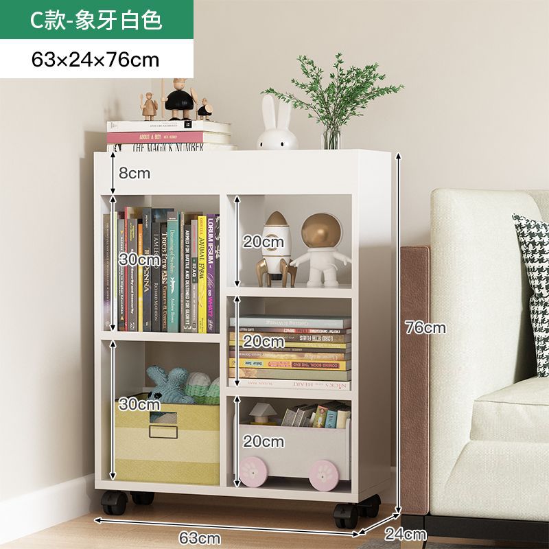 간단한 책장 바닥 보관 랙 바퀴가있는 어린이 책장 가정용 거실 침실 학생의 이동식 보관 랙