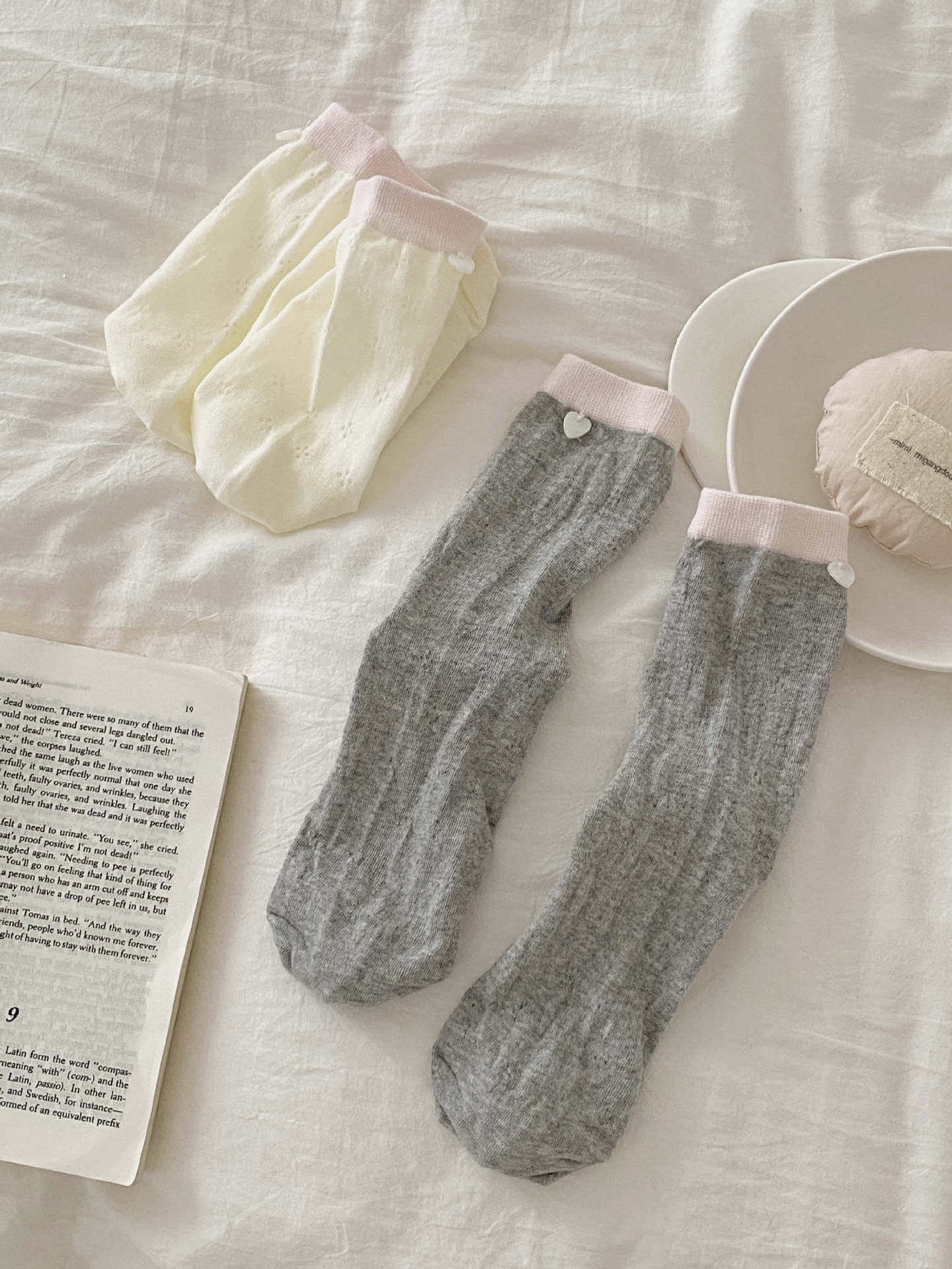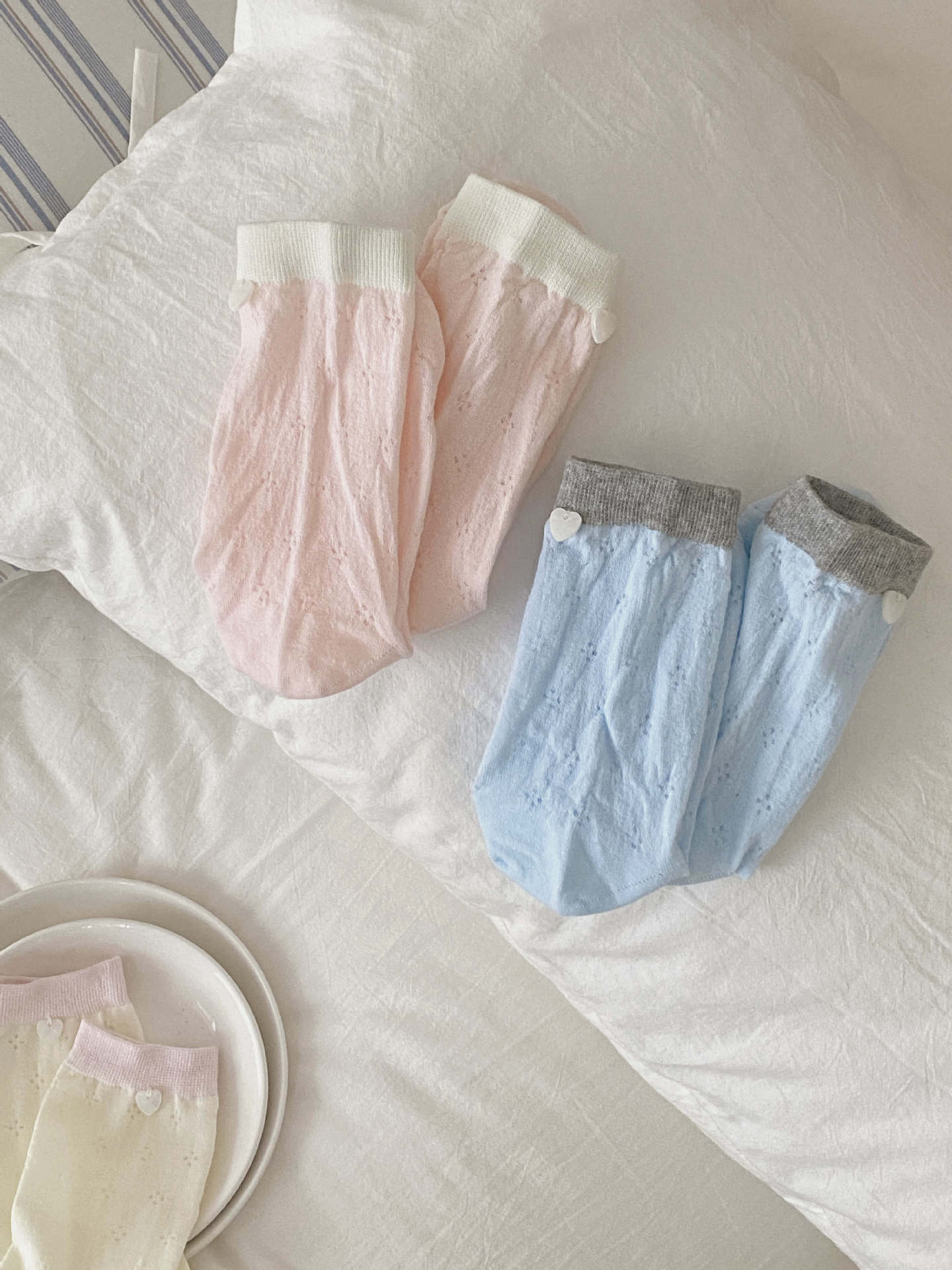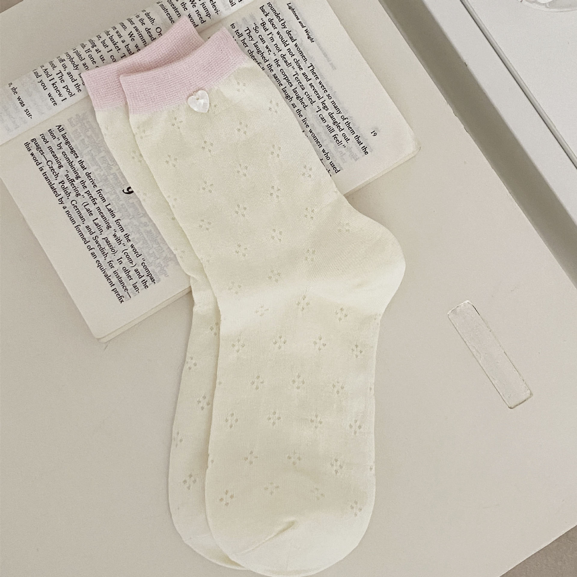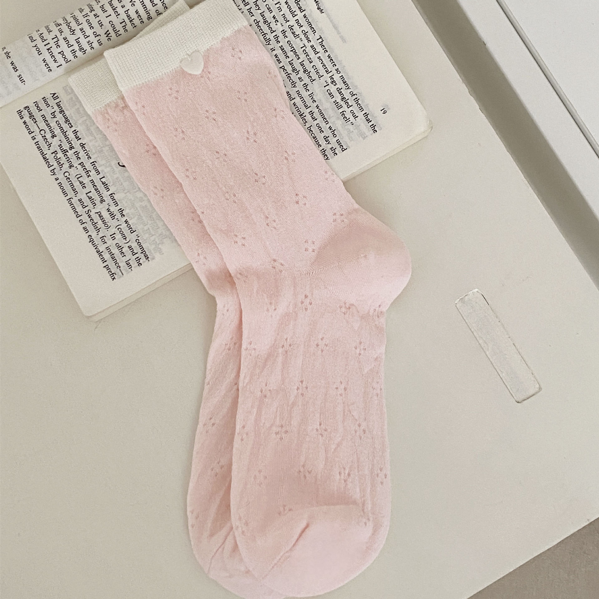 봄과 여름 여성 양말 일본 크림 컬러 중간 튜브 얇은 구멍 양말 여성 단색 거품 입 학생스토어 가기