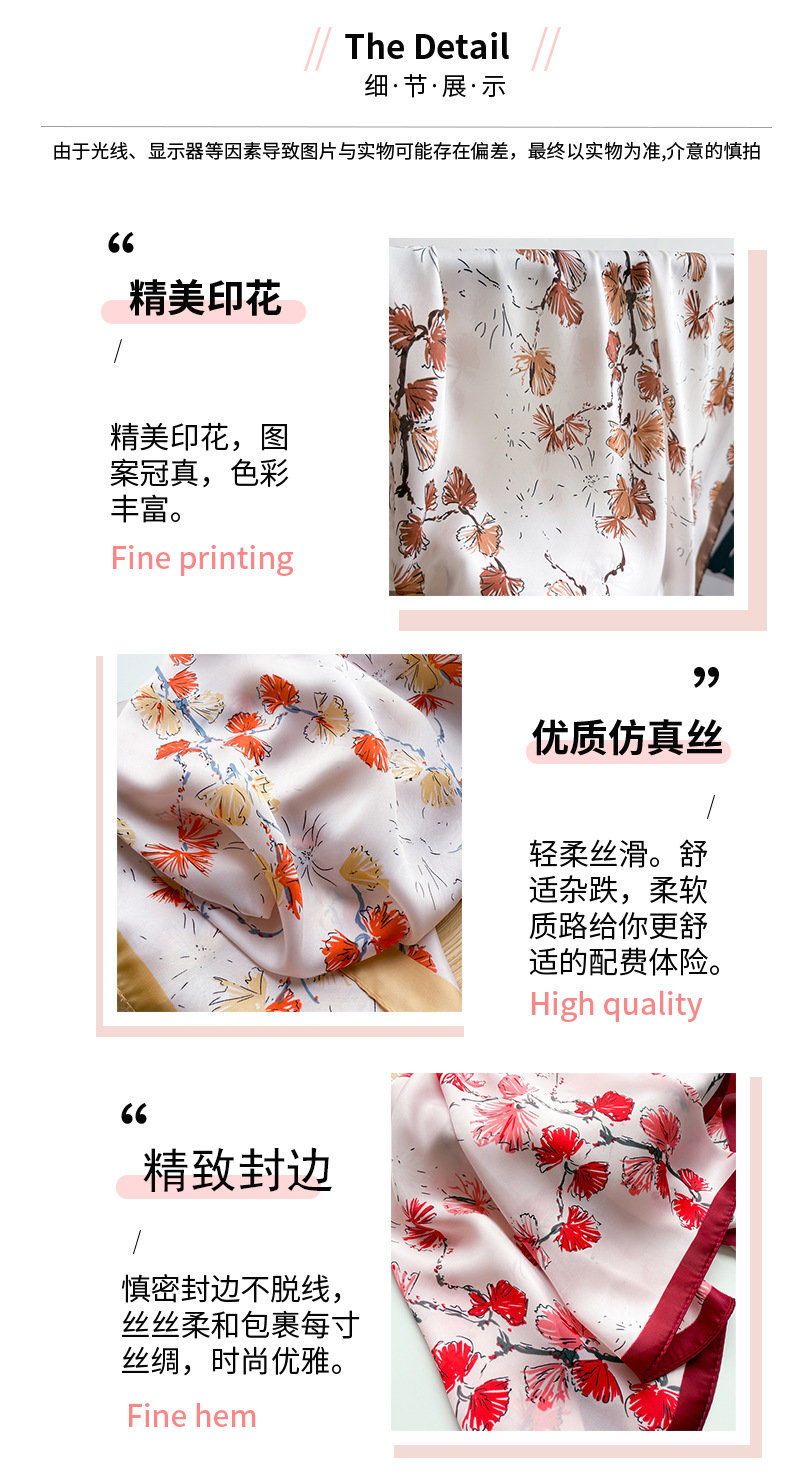 70cm 작은 광장 스카프 실크 스카프 봄 여름 꽃 춤 인쇄 스카프 전문 올 매치 스카프