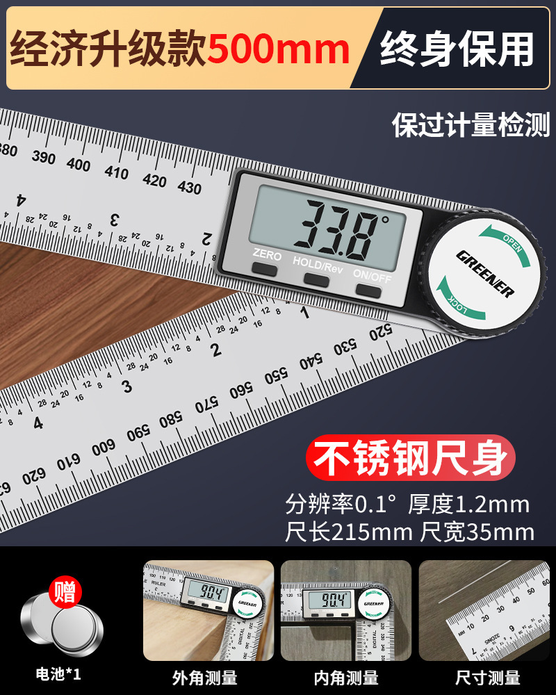• 【디지털 디스플레이 각도 360°】경제적인 업그레이드 모델 500mm(배터리 1개 포함)