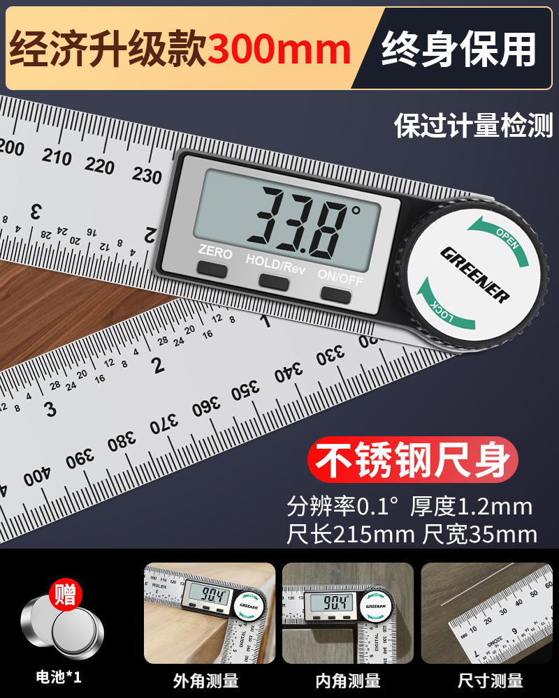 • 【디지털 디스플레이 각도 360 ° 】경제적인 업그레이드 모델 300mm(배터리 1개 포함)