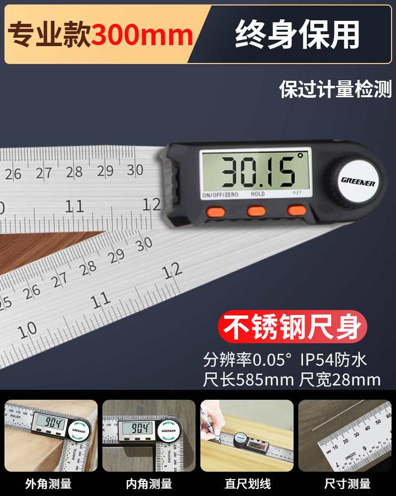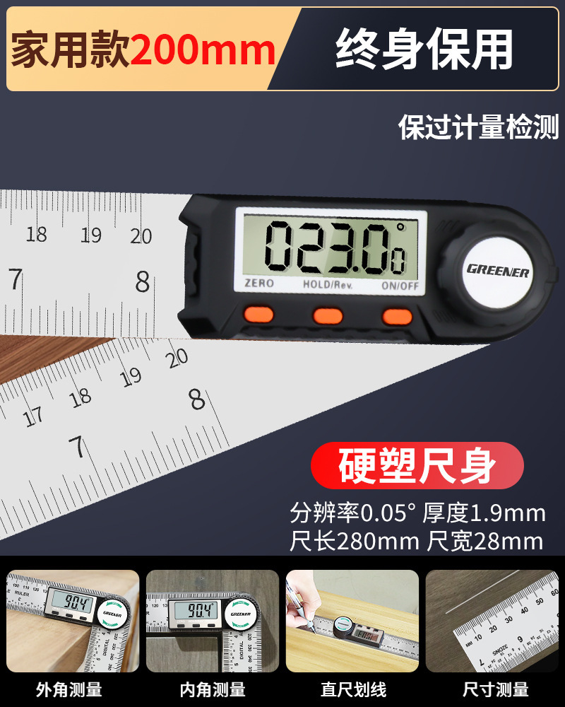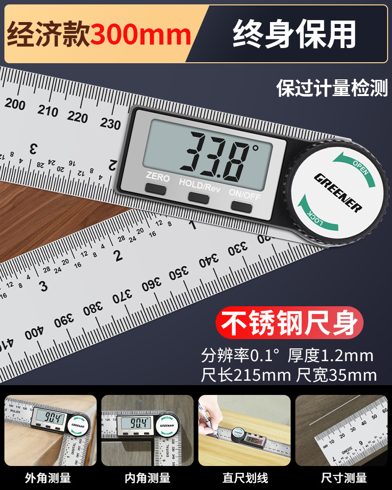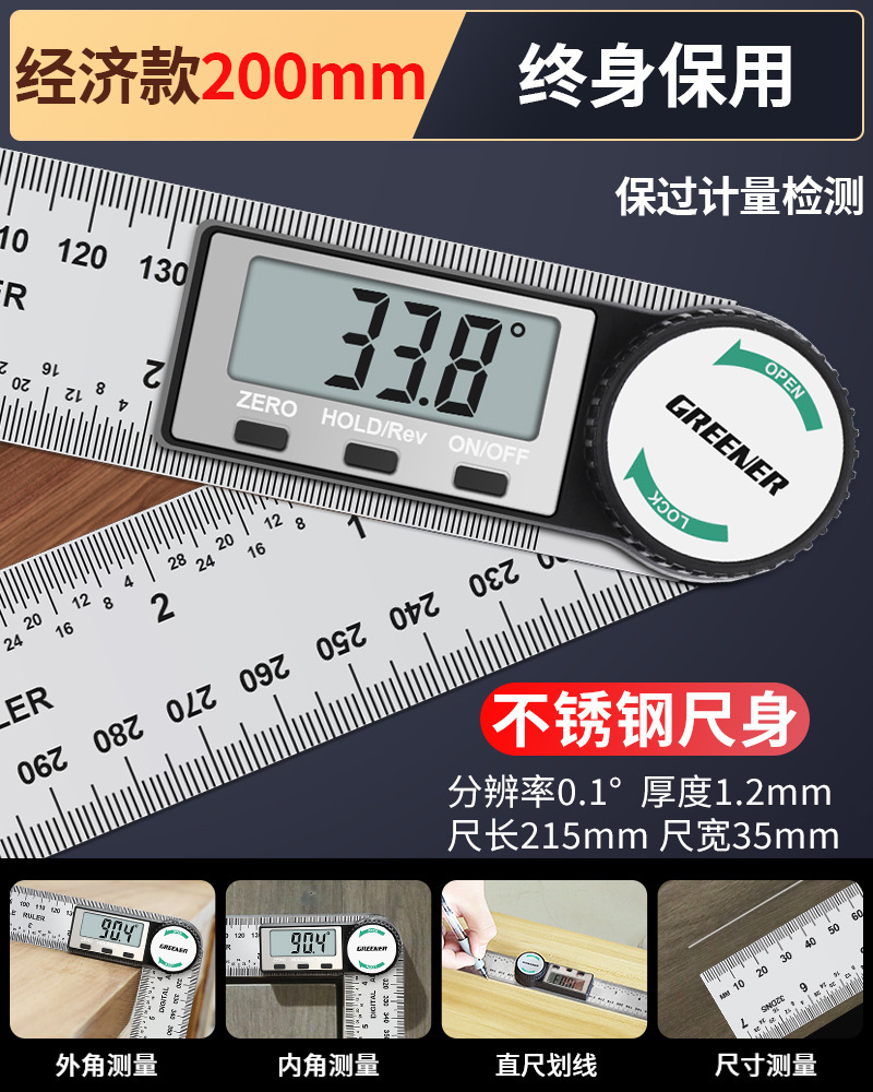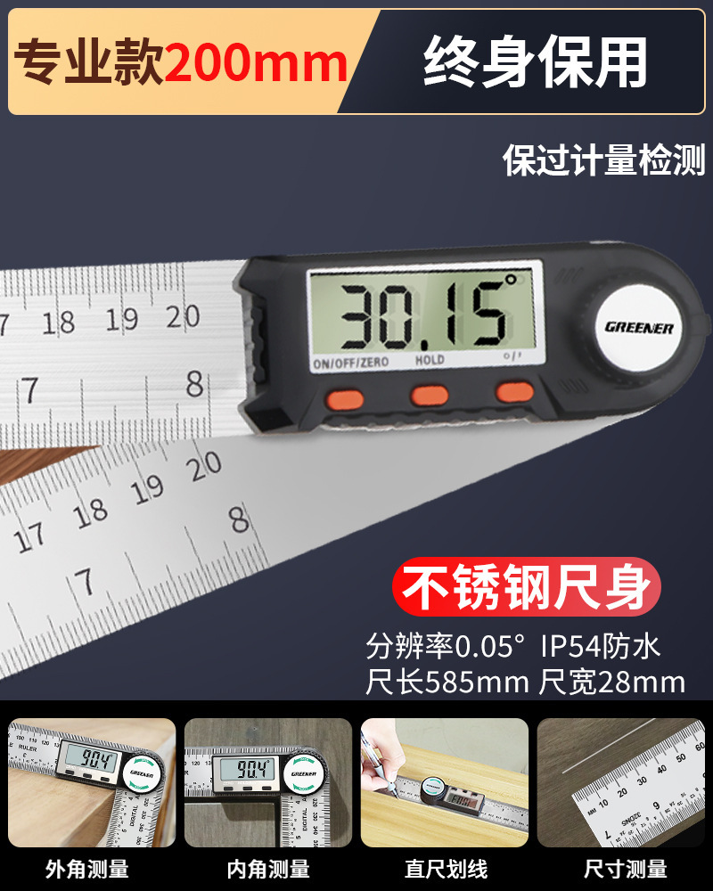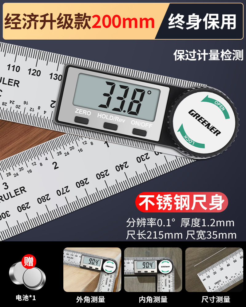 녹색 숲 디지털 각도 게이지 높은 정밀도 각도 측정 악기 90 도 목공 산업 다기능 가장자리