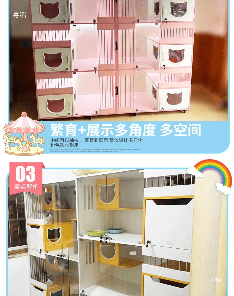 고양이 보호 캐비닛, 고양이 둥지, 투명 산모실, 고양이 케이지, 고양이 집 번식 및 보호 캐비닛, 고양이 집 3층 럭셔리스토어 가기
