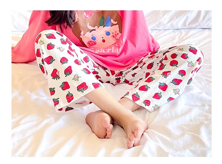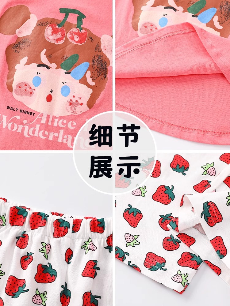 여자 인터넷 연예인 딸기 가정 의류 봄과 가을 큰 어린이 만화 소녀 공주 느슨한 잠옷 세트는 밖에서 착용할 수 있습니다스토어 가기