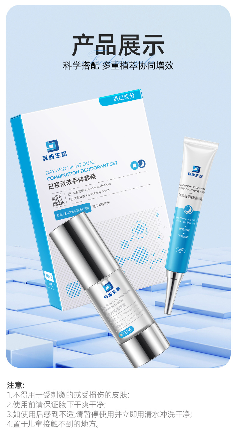 Baidi 생물학적 날과 밤 이중 효과 탈취제 바디 듀 언더 암 탈취제 듀 Tetrachloro알루미늄 지르코늄 수산화 나트륨 세트 남성과 여성스토어 가기