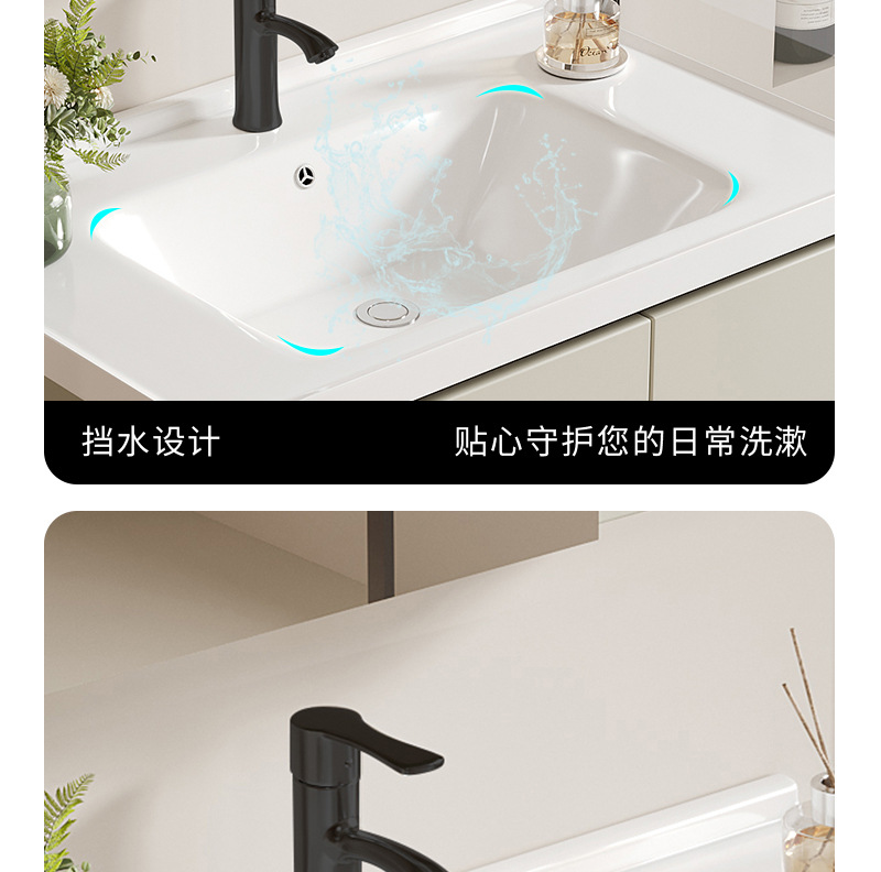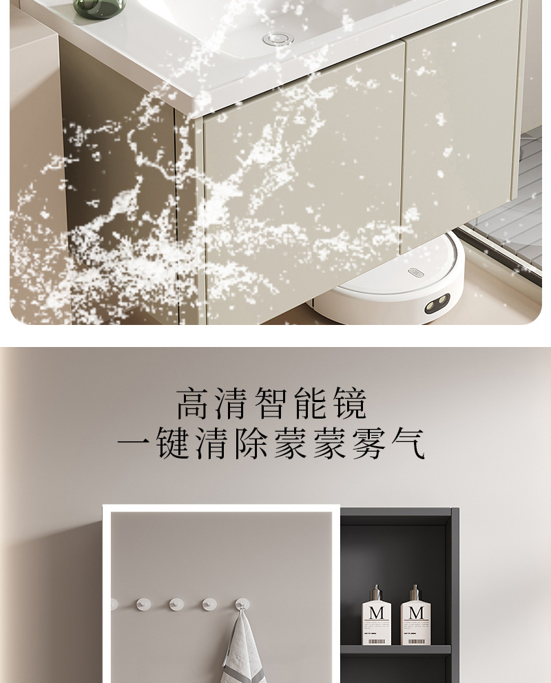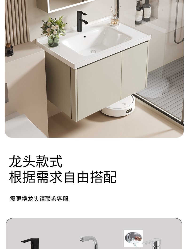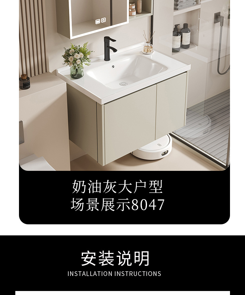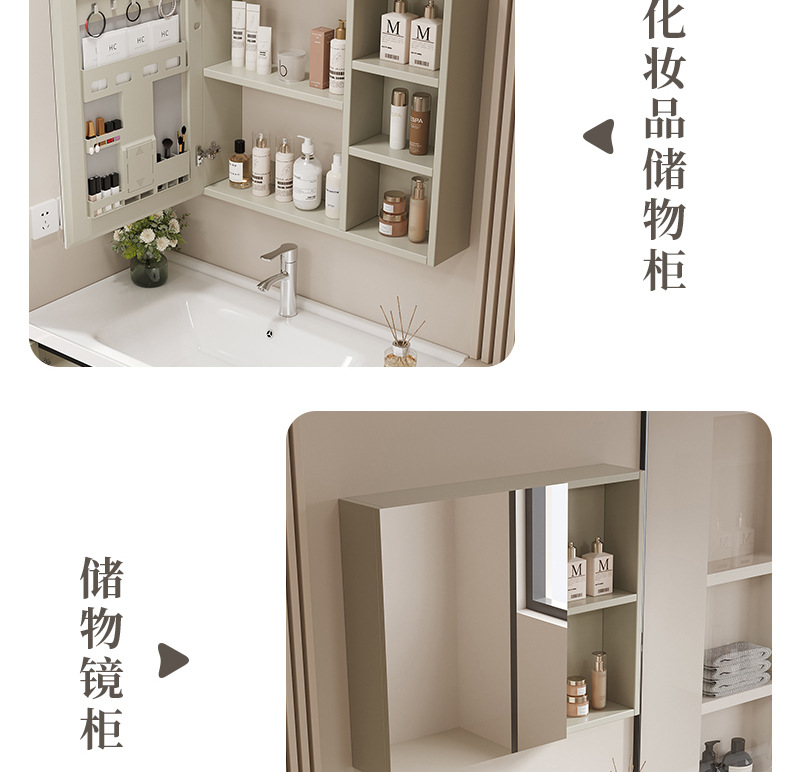 • 카키 그레이 8047 세라믹 세면대 캐비닛 + 스마트 수납 거울 캐비닛