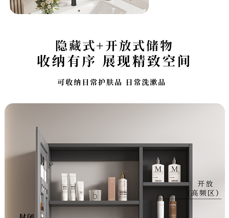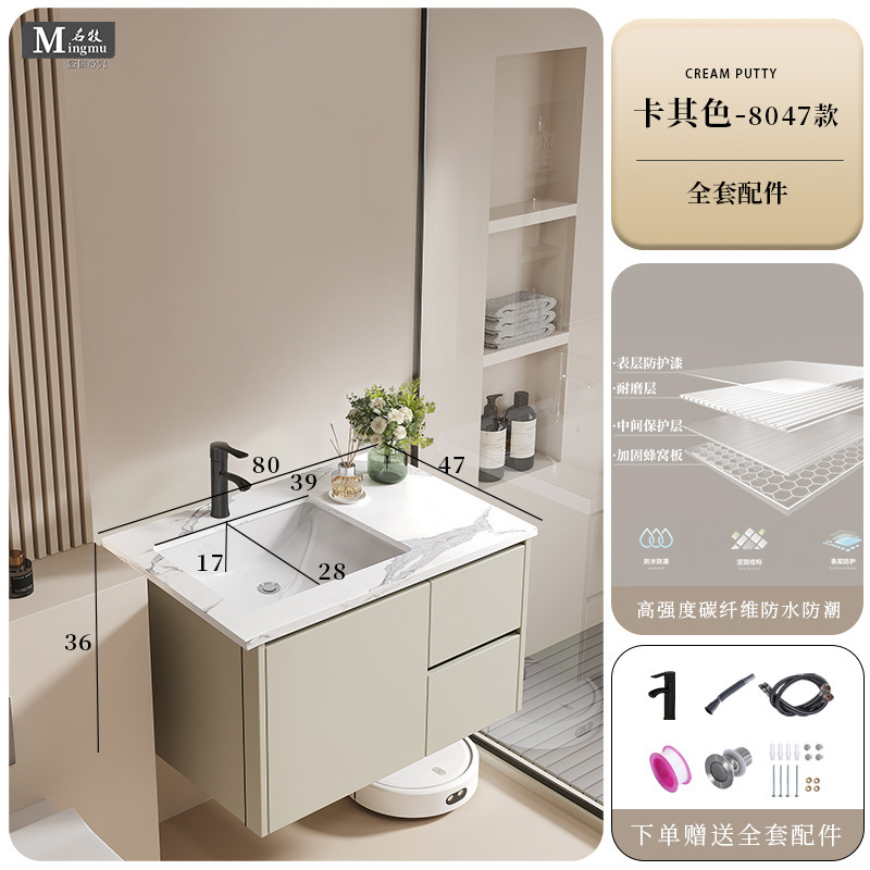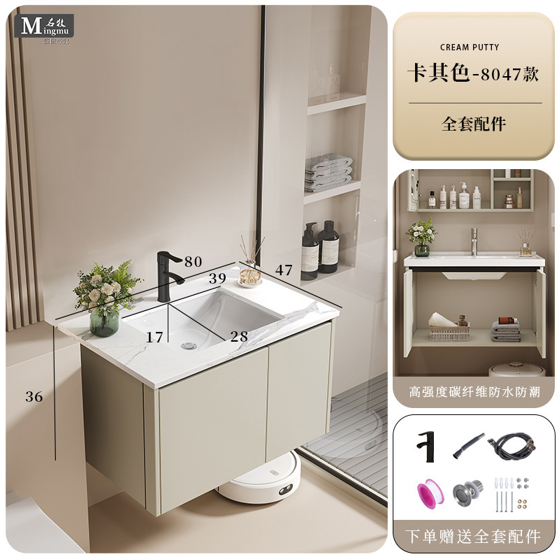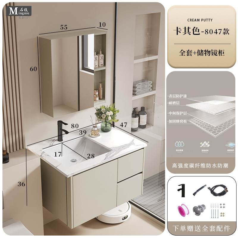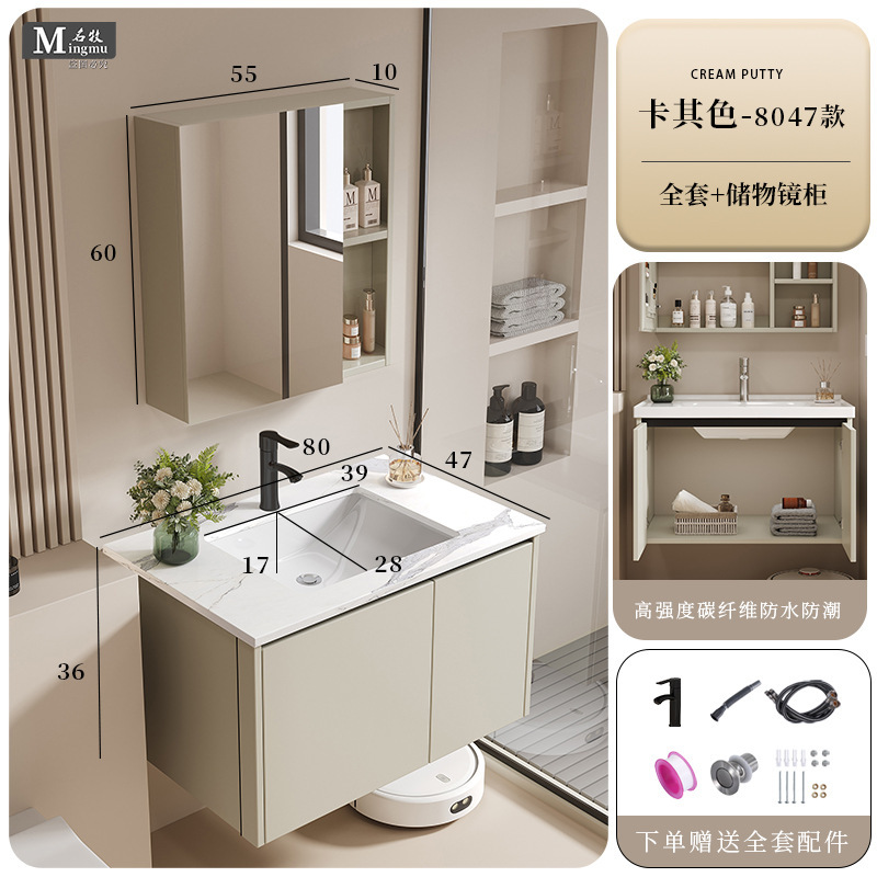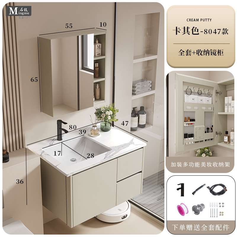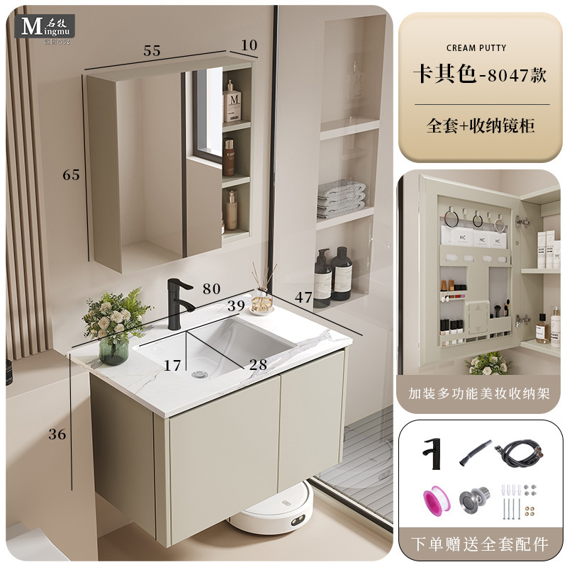 • 카키 그레이 8047 슬레이트 세면대 캐비닛 + 스마트 수납 거울 캐비닛
