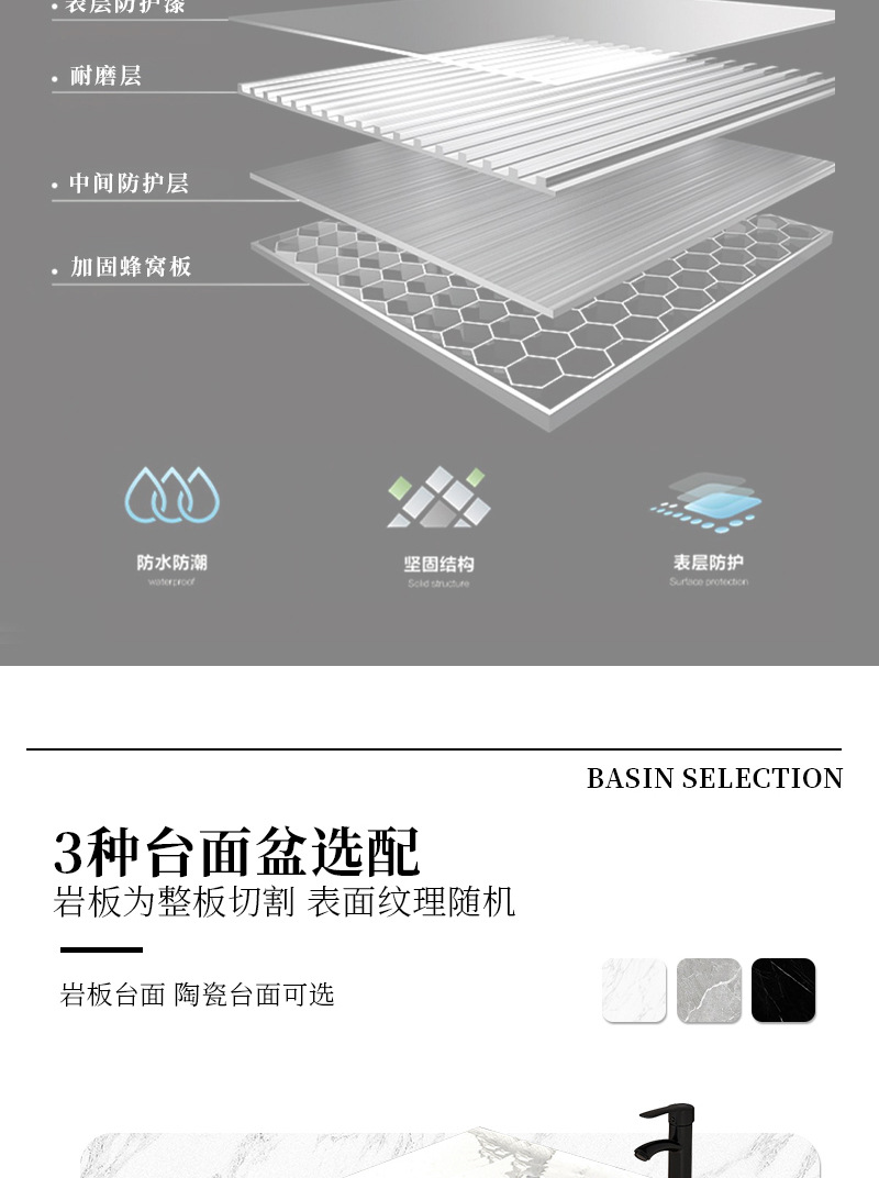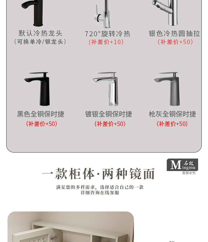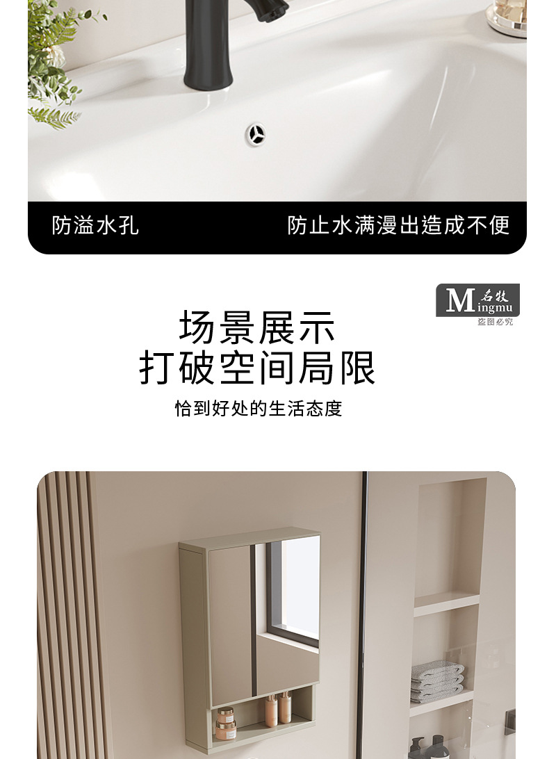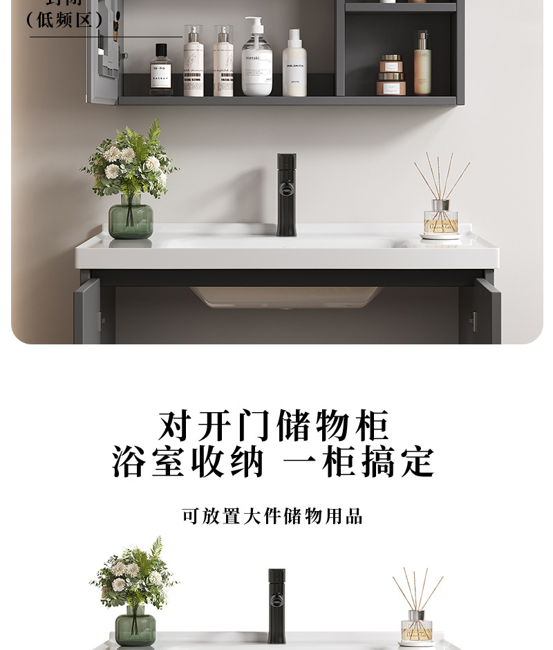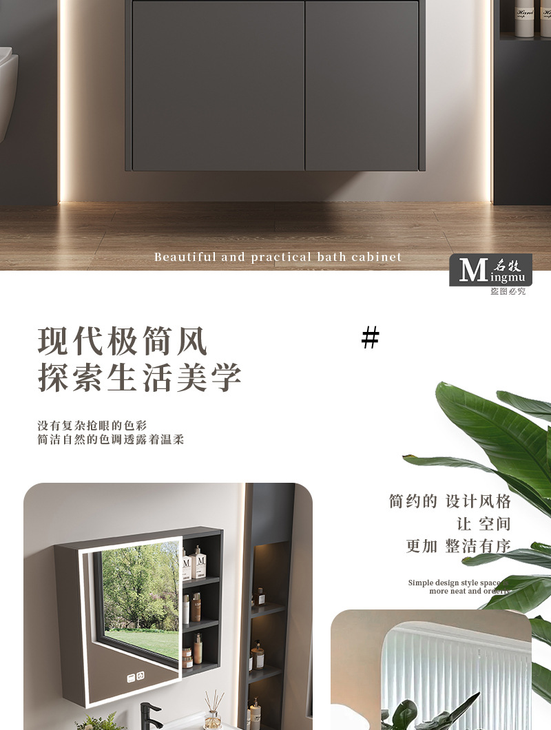 • 카키 그레이 8047 슬레이트 세면대 캐비닛 + 스마트 수납 거울 캐비닛