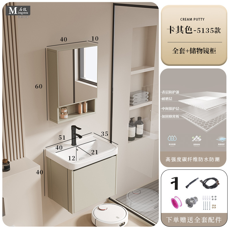 • 카키 그레이 5135 세라믹 세면대 캐비닛 + 일반 거울 캐비닛