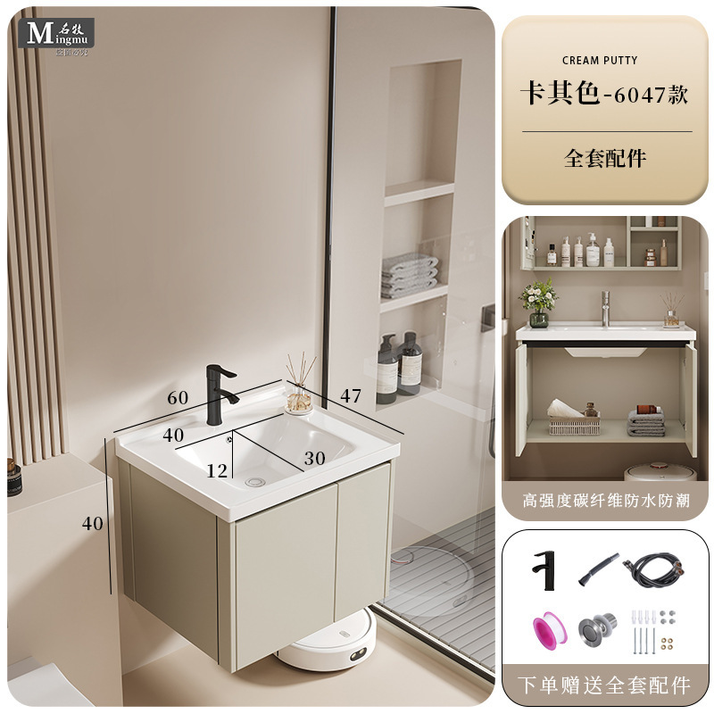 • 카키 그레이 6040 세라믹 세면대 캐비닛 + 스마트 수납 거울 캐비닛