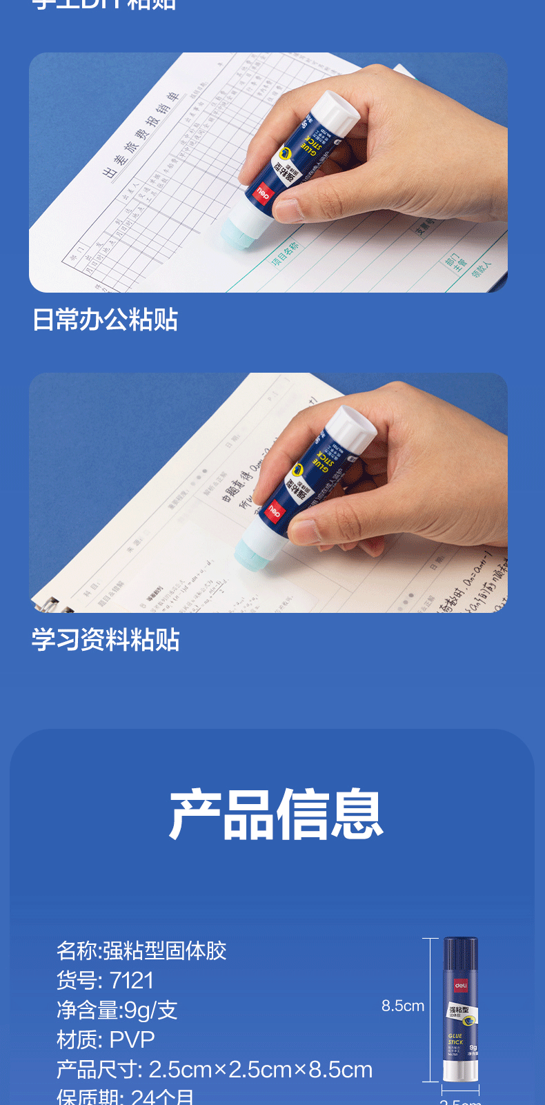델리 7122 강한 접착제 스틱 21g 학생 수동 접착제 스틱 강한 접착 금융 사무실 스몰 사이즈 접착제