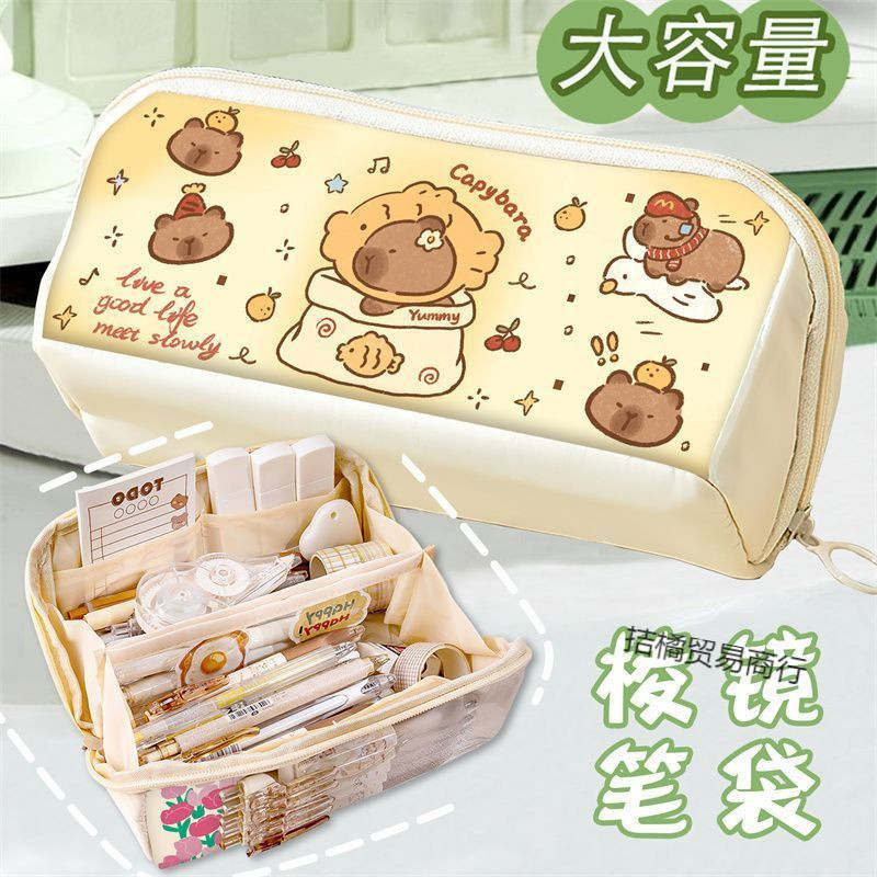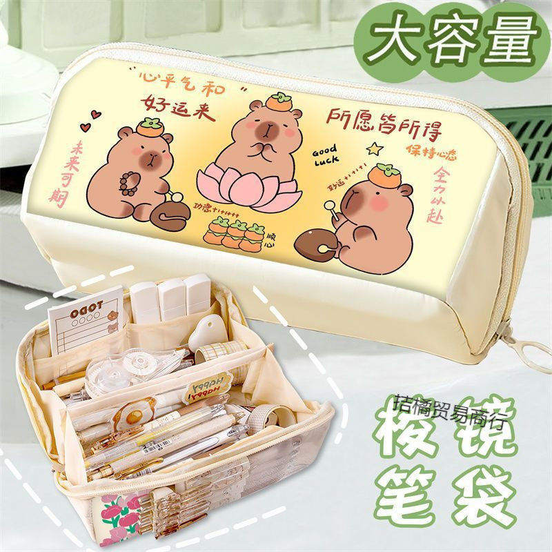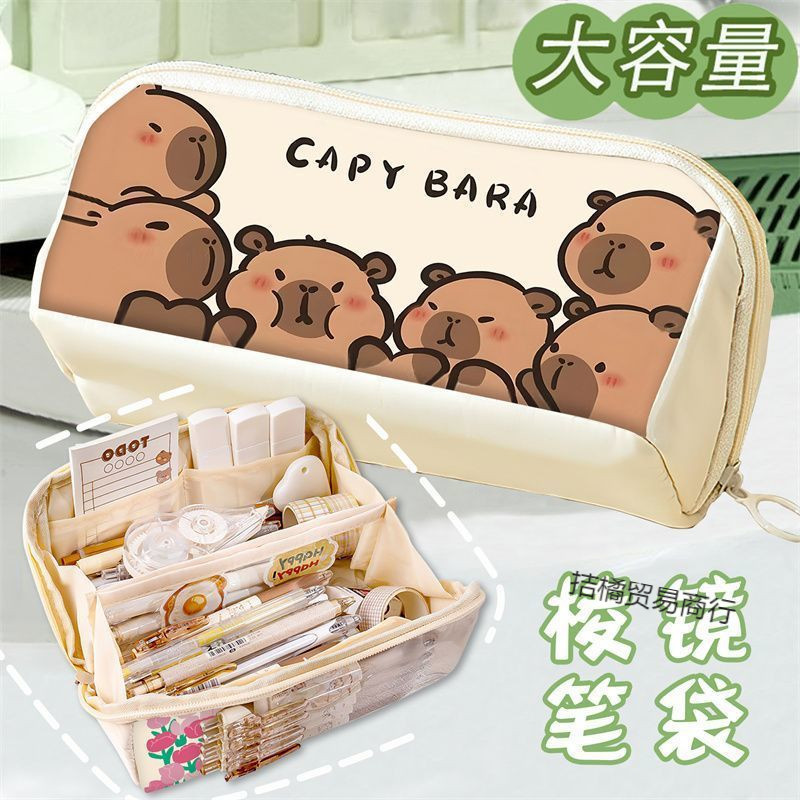 카피 발라 연필 케이스 대용량 귀여운 카피 바라 연필 케이스 높은 색상 가치 재미 재미있는 문구 케이스 링