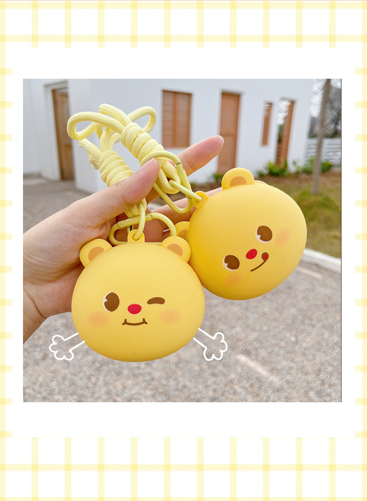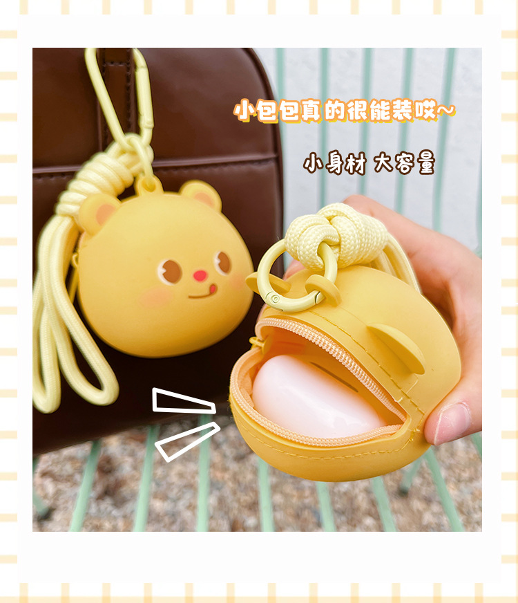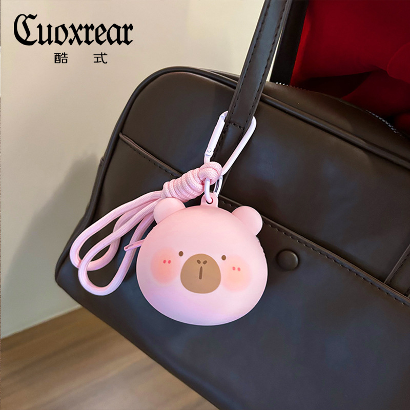 원래 귀여운 곰 실리콘 동전 지갑 Capibala 보관 가방 헤드폰 돼지 키 체인 학교 가방 펜던트