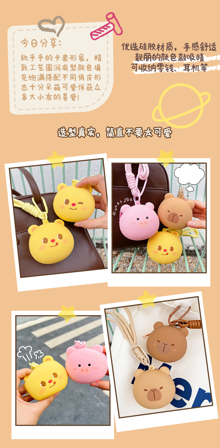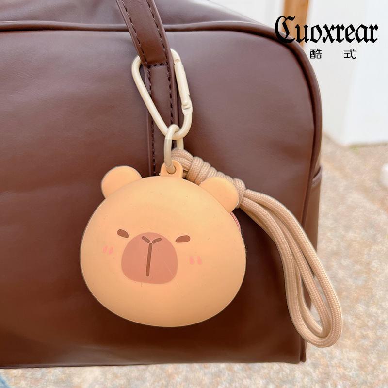 원래 귀여운 곰 실리콘 동전 지갑 Capibala 보관 가방 헤드폰 돼지 키 체인 학교 가방 펜던트스토어 가기
