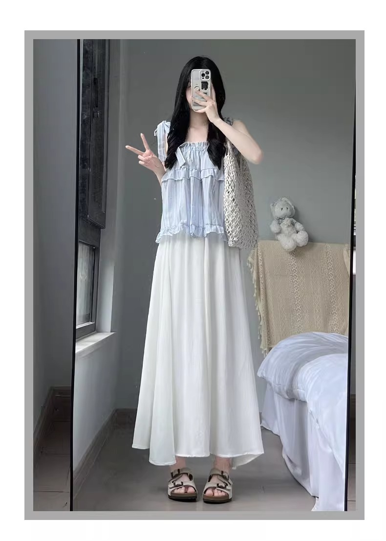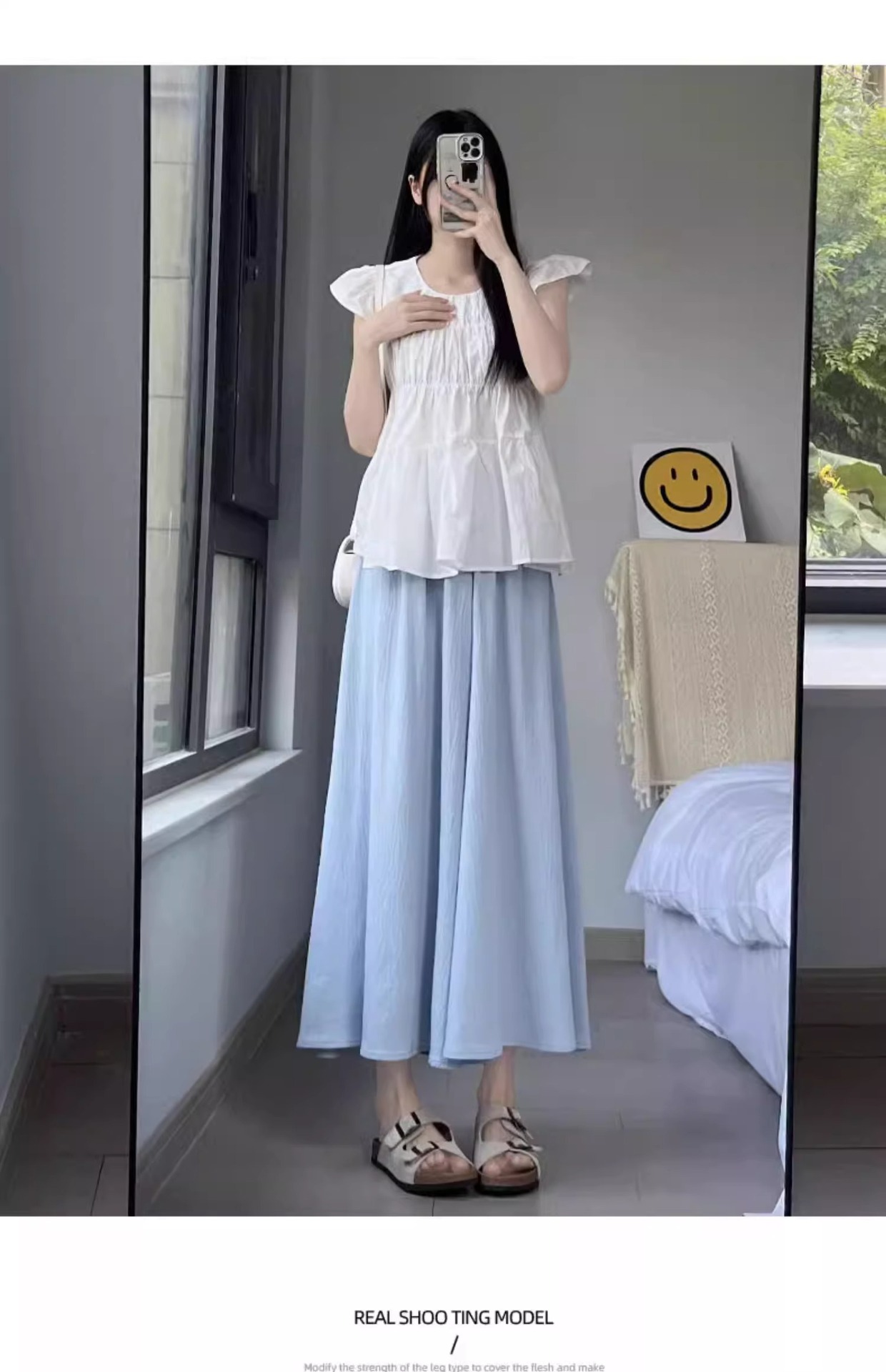화이트 아이스 실크 바지 스커트 여성 봄과 가을 여름 얇은 2025 새로운 높은 허리 원숭이 작은 캐주얼 와이드 다리 바지스토어 가기