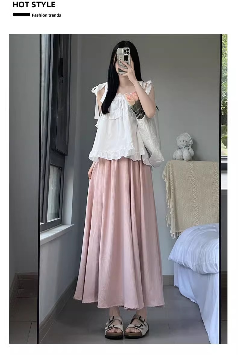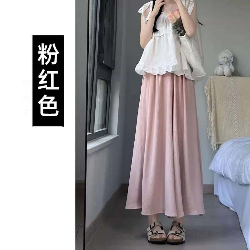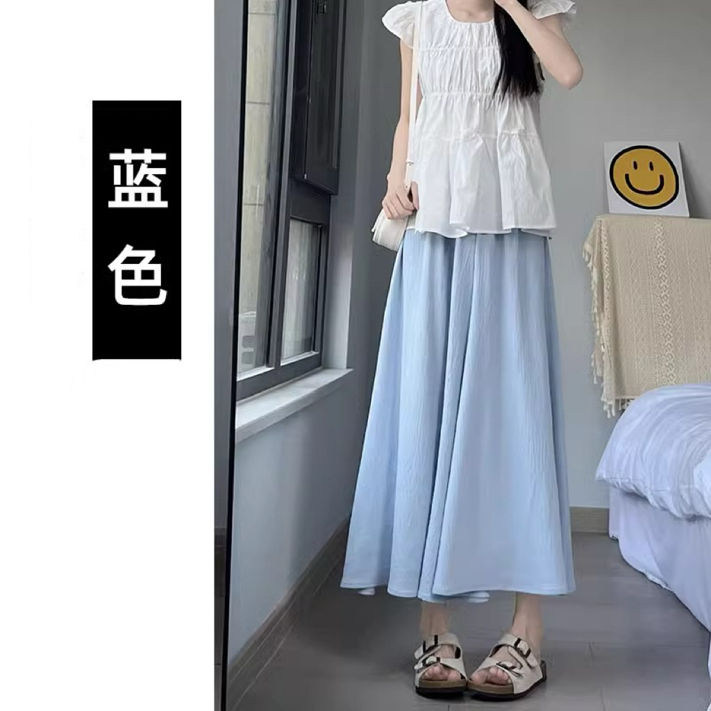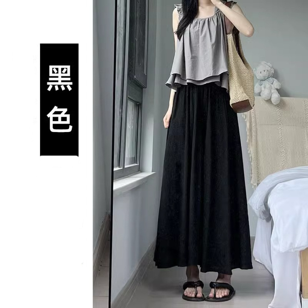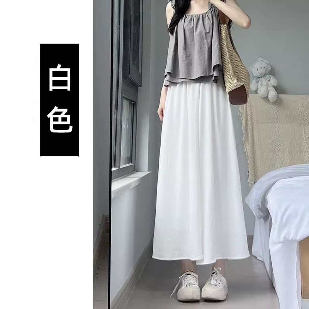 화이트 아이스 실크 바지 스커트 여성 봄과 가을 여름 얇은 2025 새로운 높은 허리 원숭이 작은 캐주얼 와이드 다리 바지