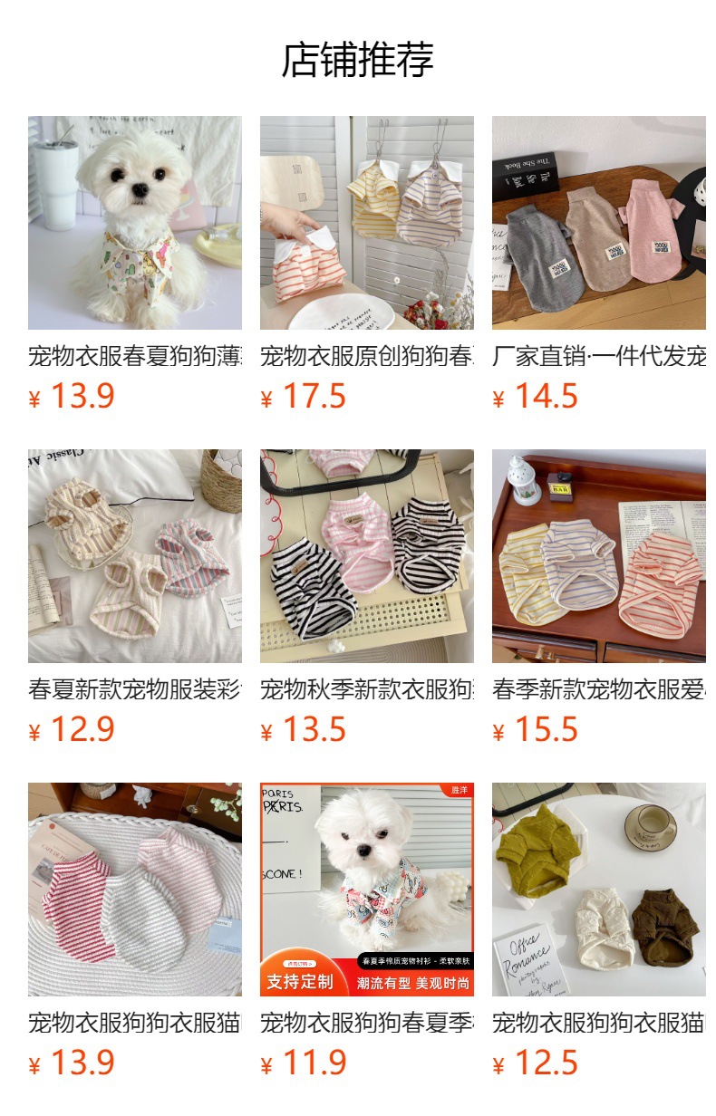 애완동물 옷 오리지널 강아지 봄 여름 옷 폴로 셔츠 피부 친화적 부드럽고 통기성 있는 고양이 옷 강아지 옷스토어 가기