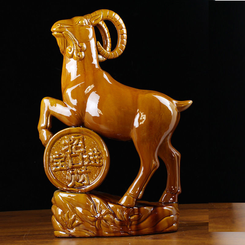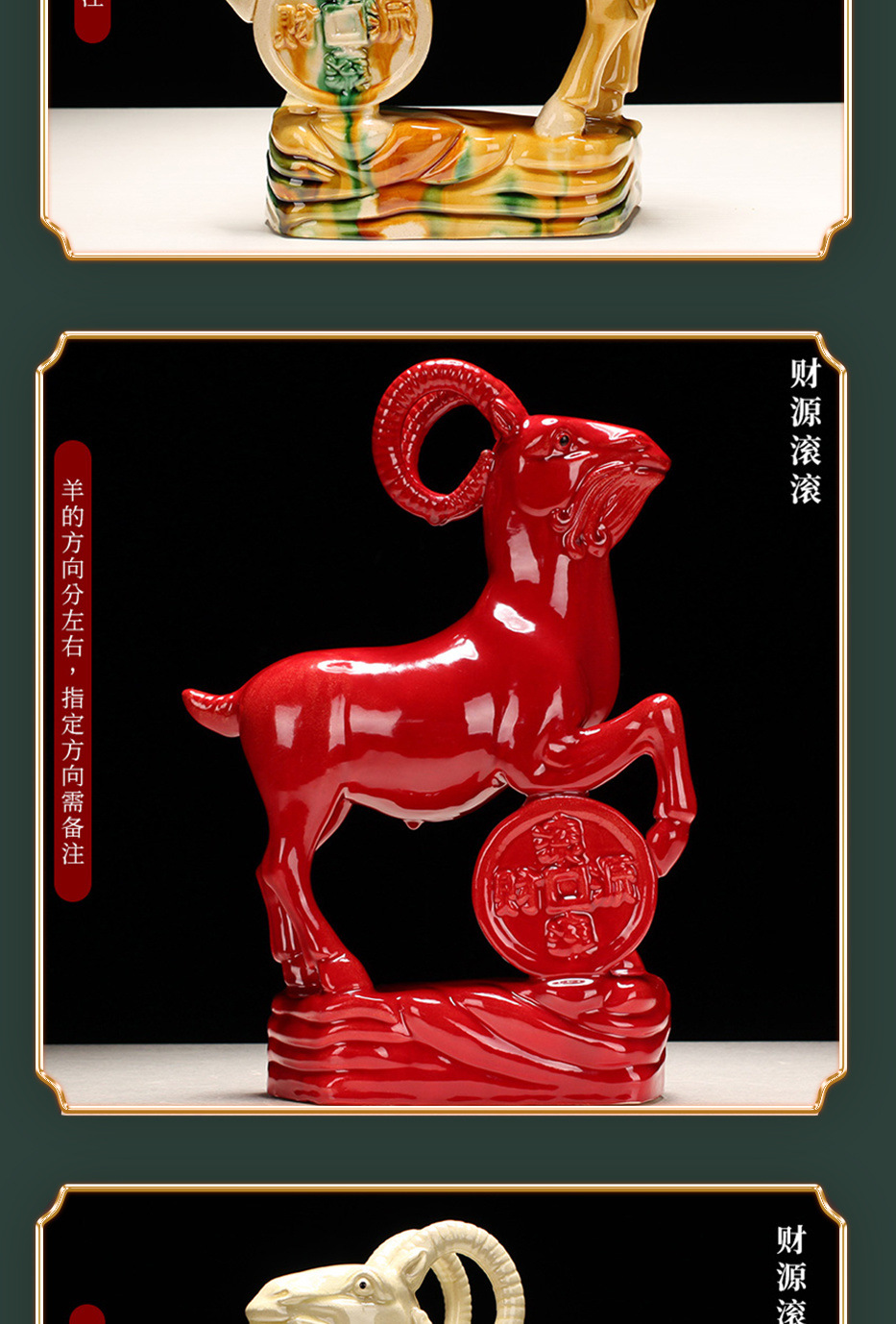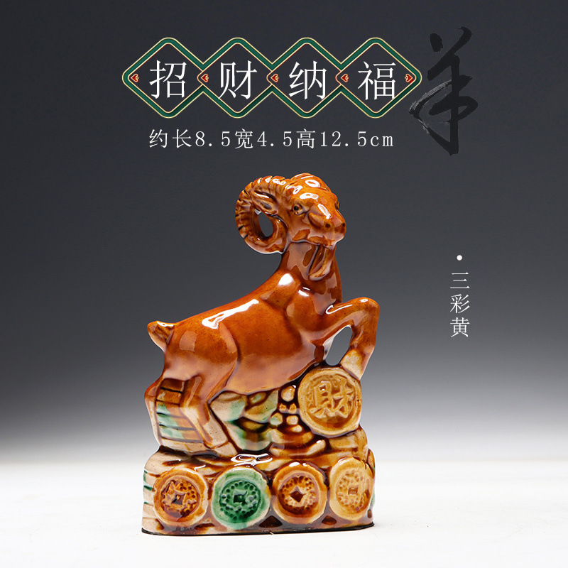 ∝ Tang Sancai 양 세라믹 양 장식품 거실 연구 사무실 장식 양 공예 조디악 양 풍수스토어 가기