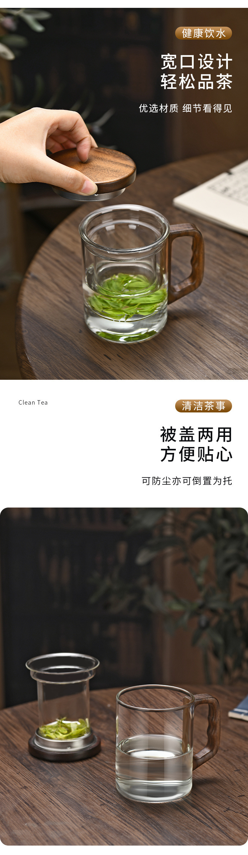 유리 차 컵 차 물 분리 물 컵 남자 차 컵 여자 개인 사무실 차 세트스토어 가기