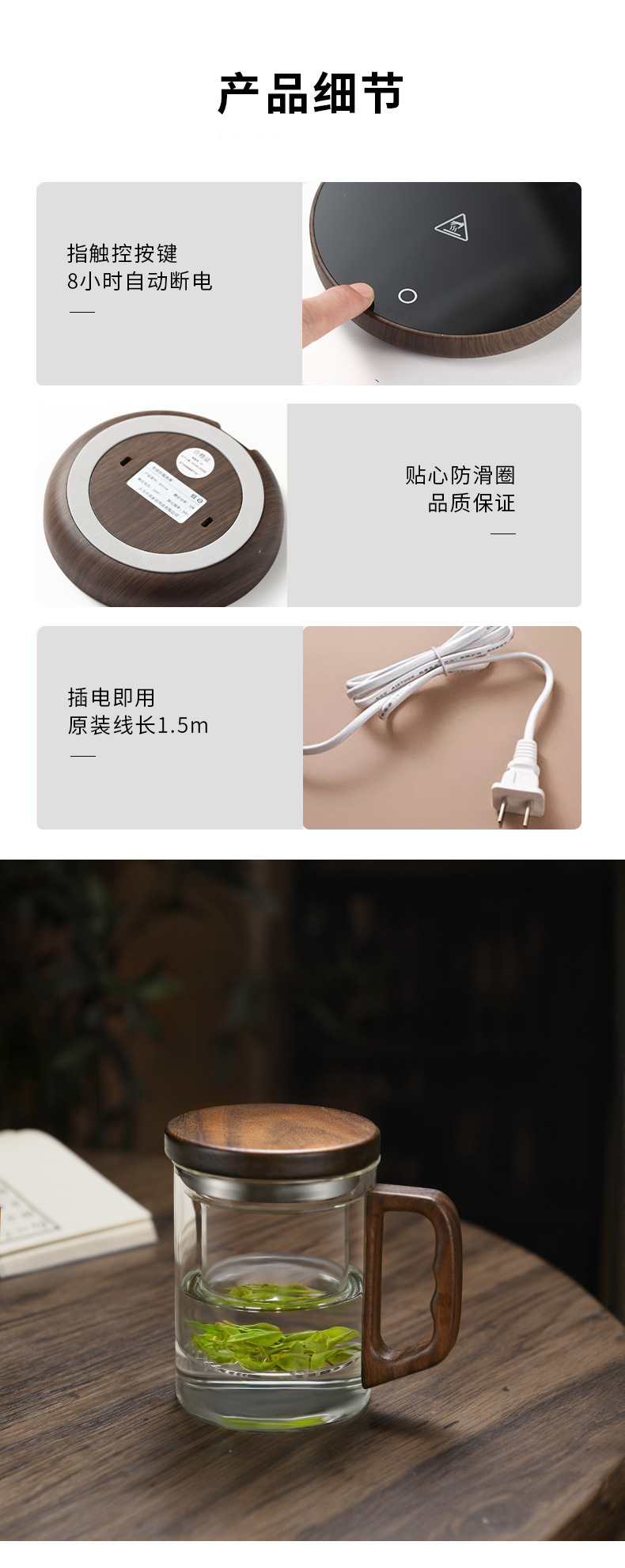 • O자형 나무 손잡이 컵 380ml