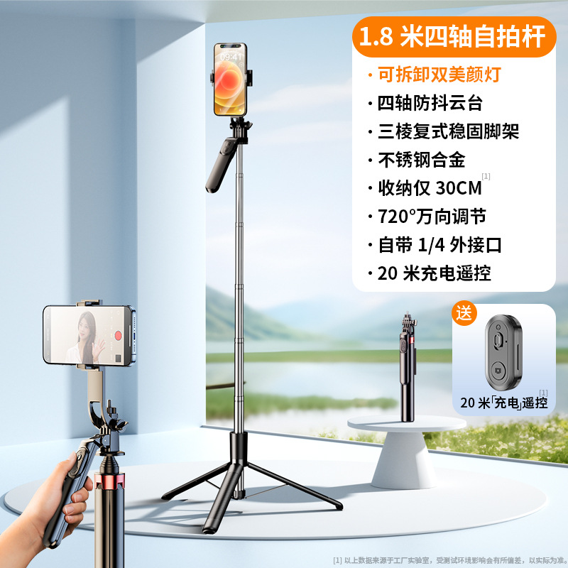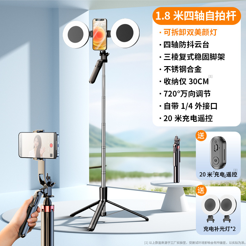• 1.8m [알루미늄 합금 폴丨4축 안정 촬영] 더블 라이트 뷰티 + 무료 리모콘