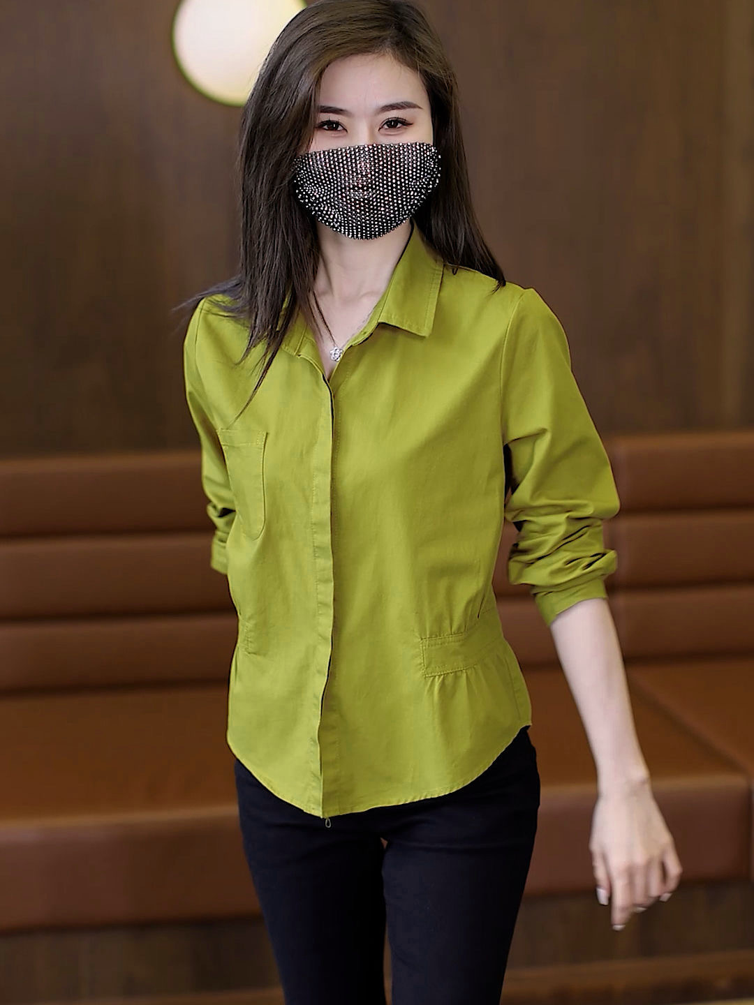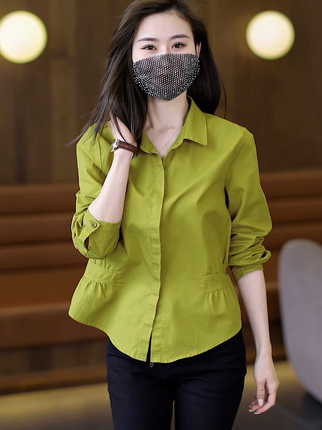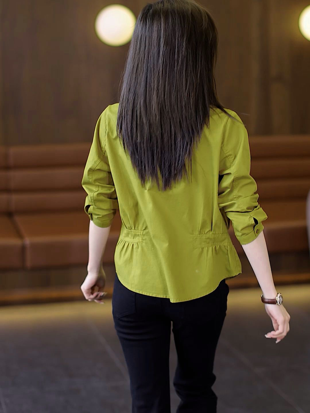 벨리 커버 여성 셔츠 2025 봄과 가을 옷 외국 우아한 나이 감소 느슨한 카디건 긴팔 셔츠 더블 포켓 탑스토어 가기