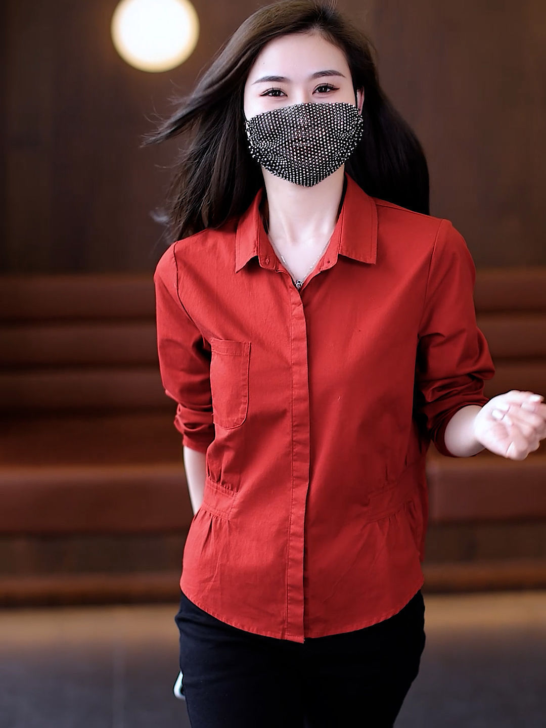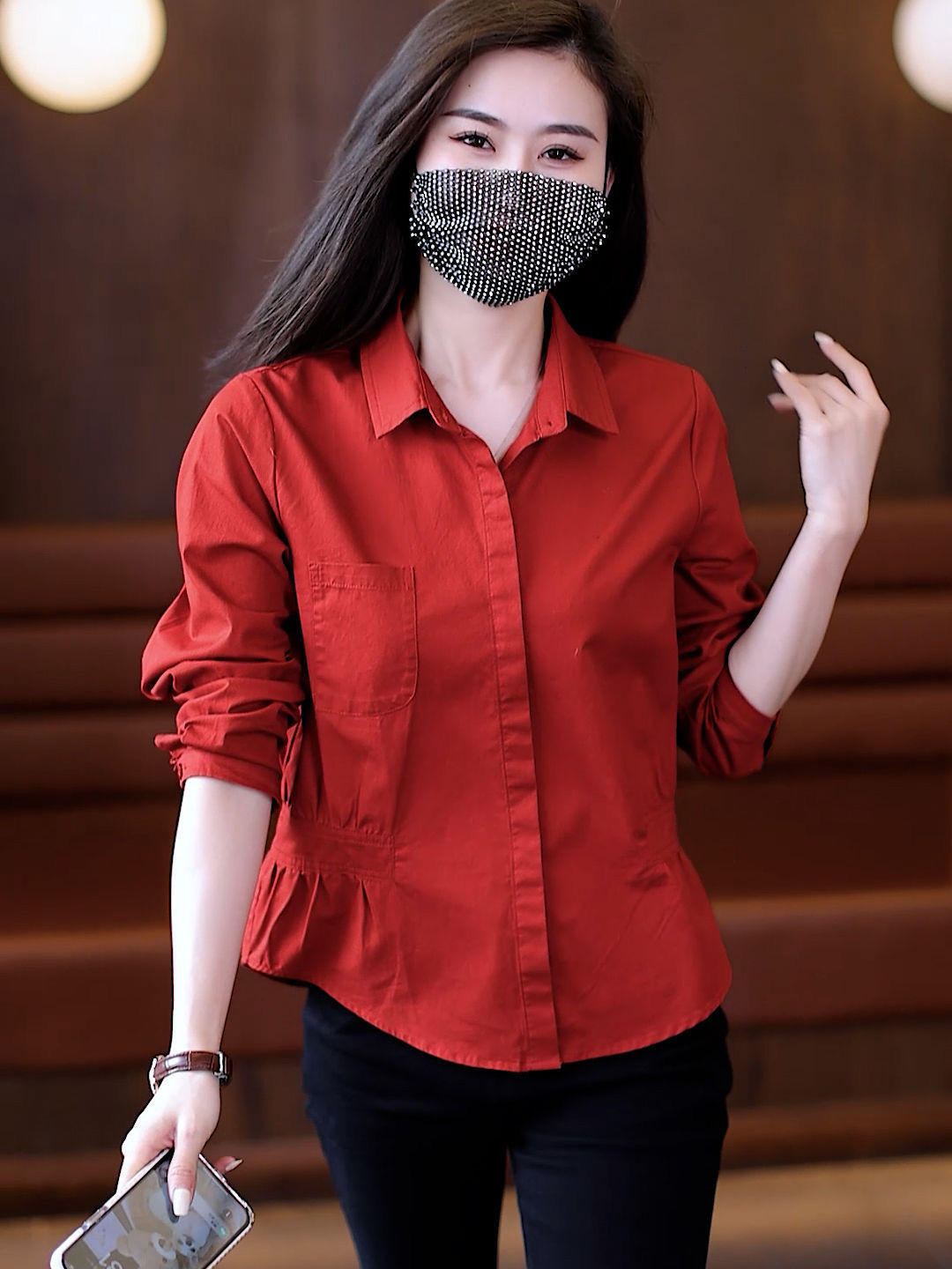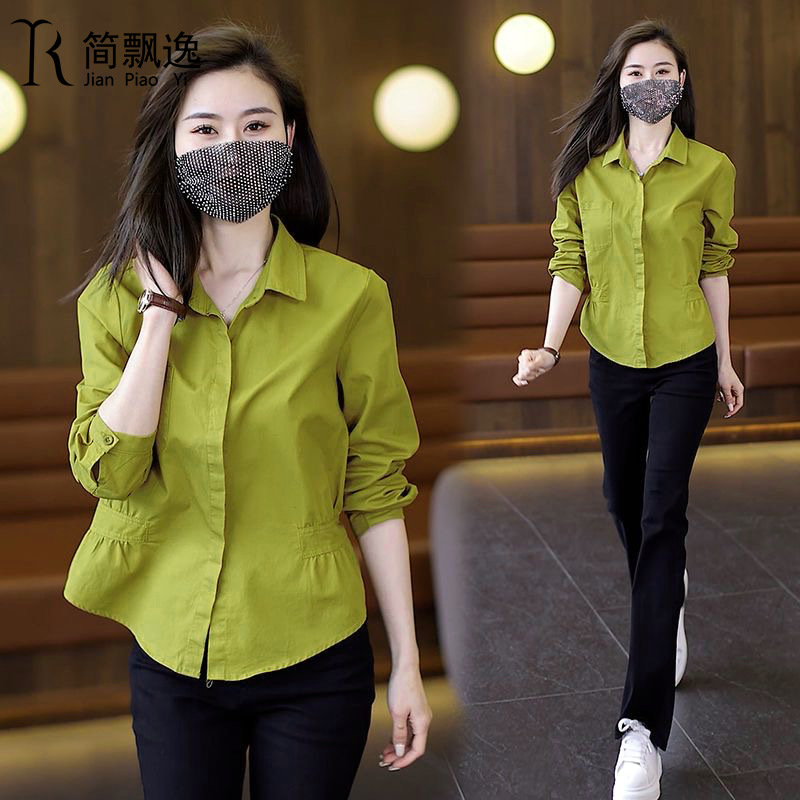 벨리 커버 여성 셔츠 2025 봄과 가을 옷 외국 우아한 나이 감소 느슨한 카디건 긴팔 셔츠 더블 포켓 탑스토어 가기
