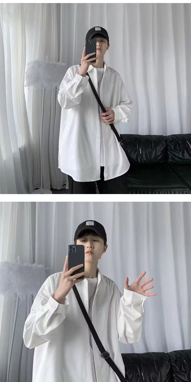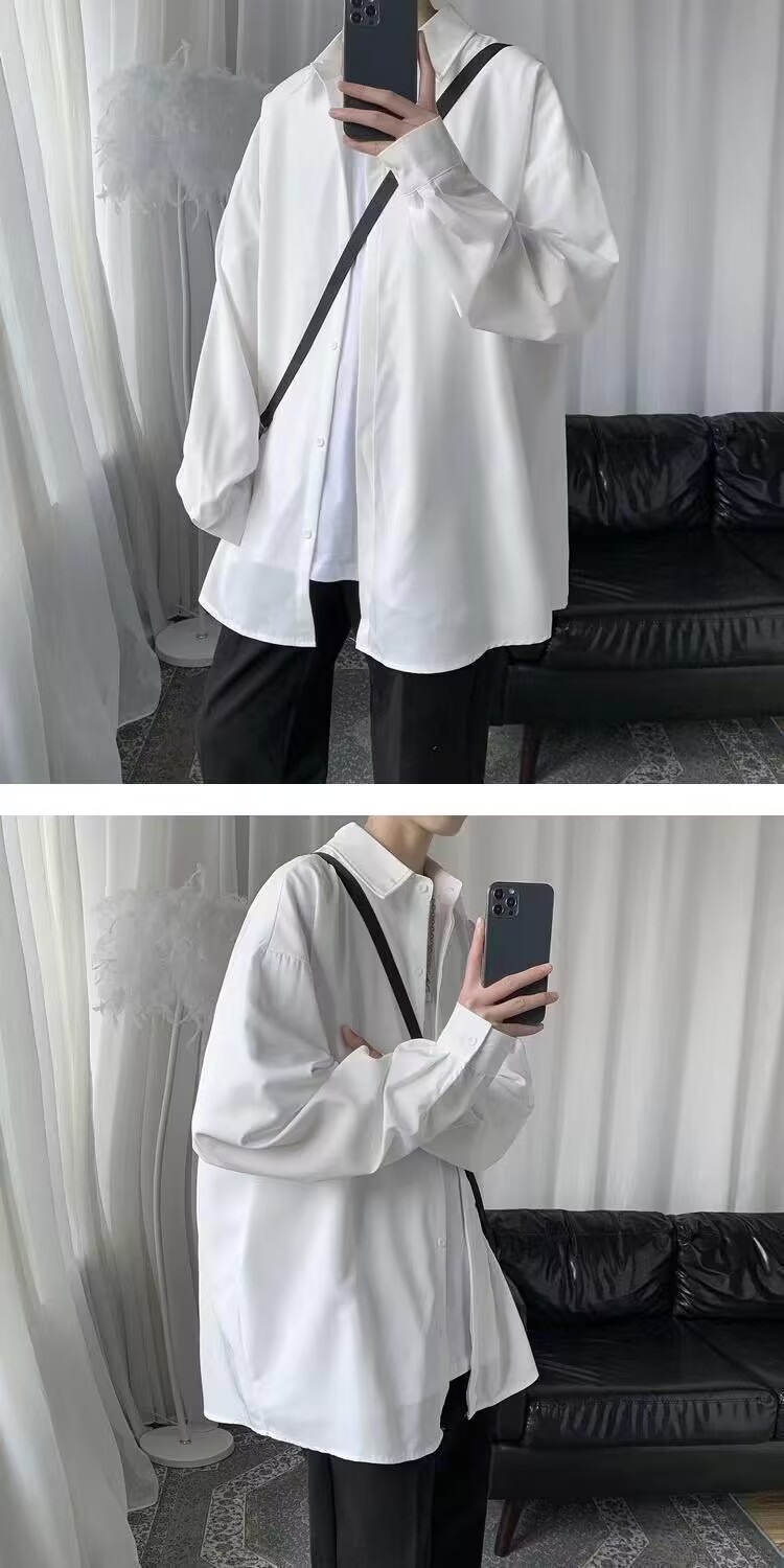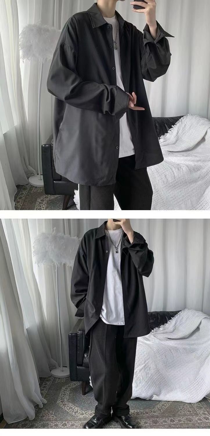 여름 긴 소매 아이스 실크 셔츠 남자의 한국 스타일 느슨한 얇은 셔츠 유행 새로운 스타일 더피 슈아이 잘 생긴 재킷 캐주얼