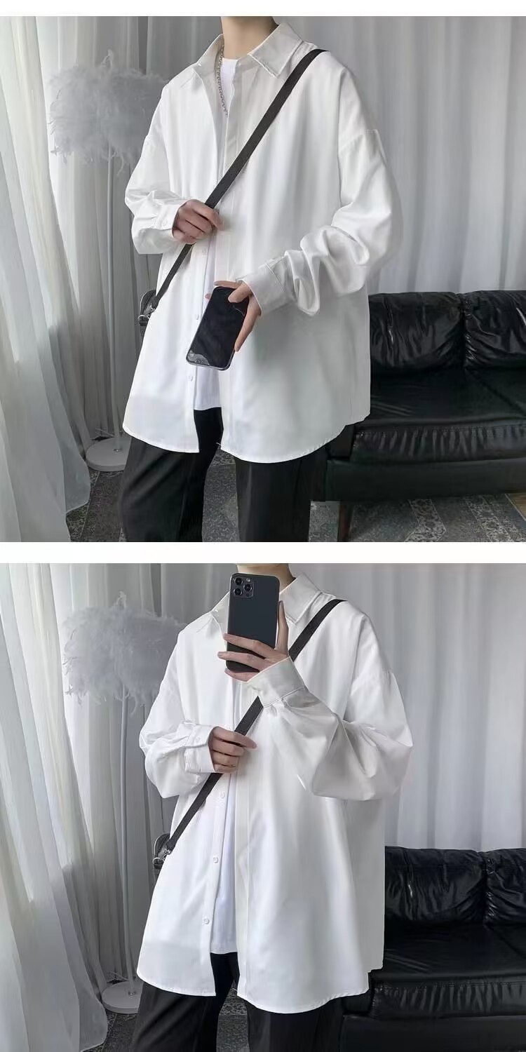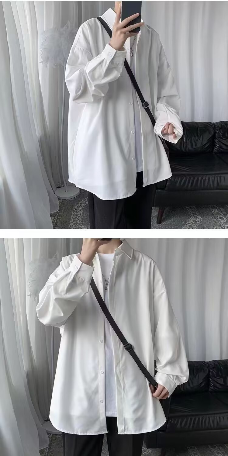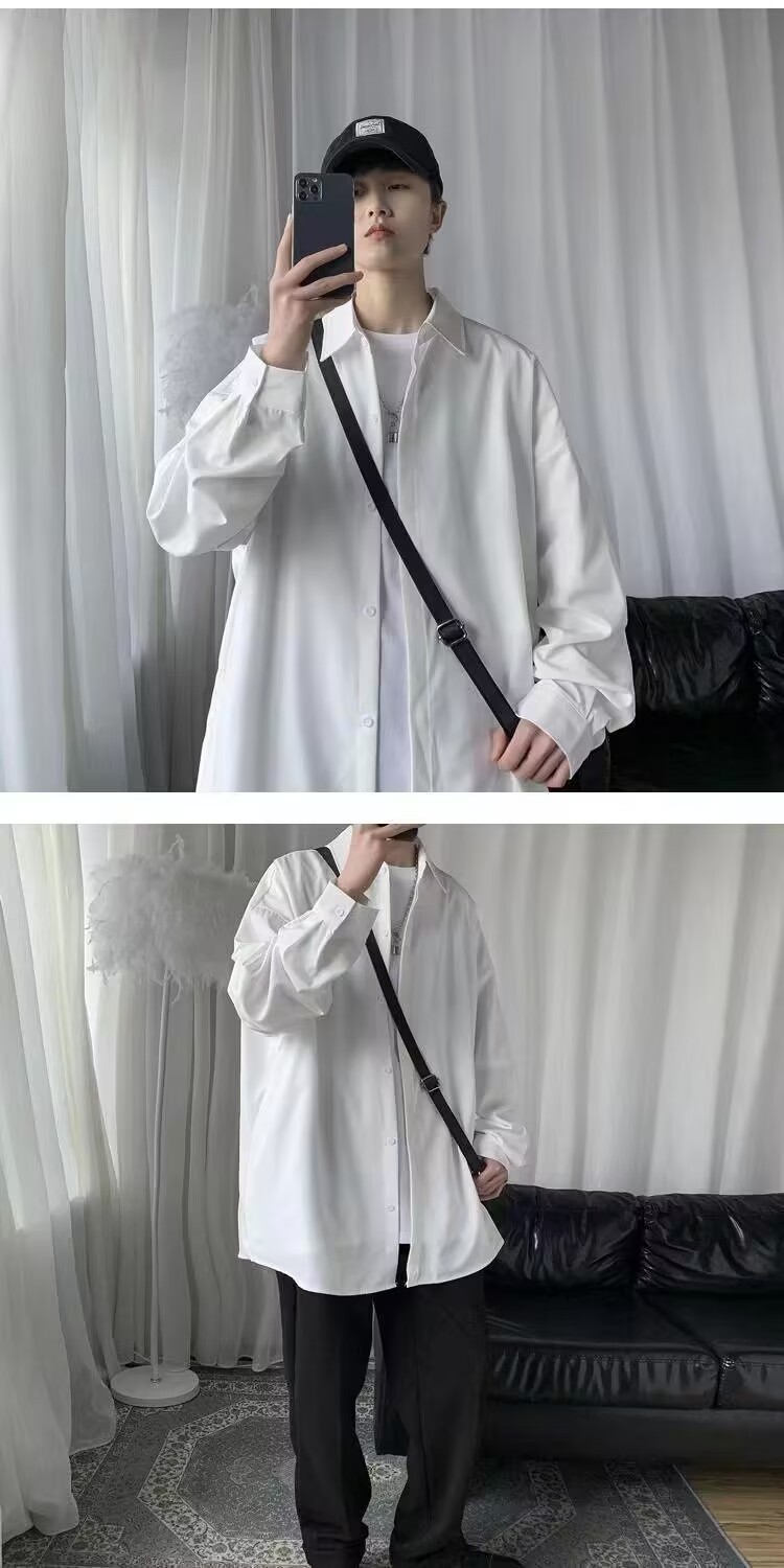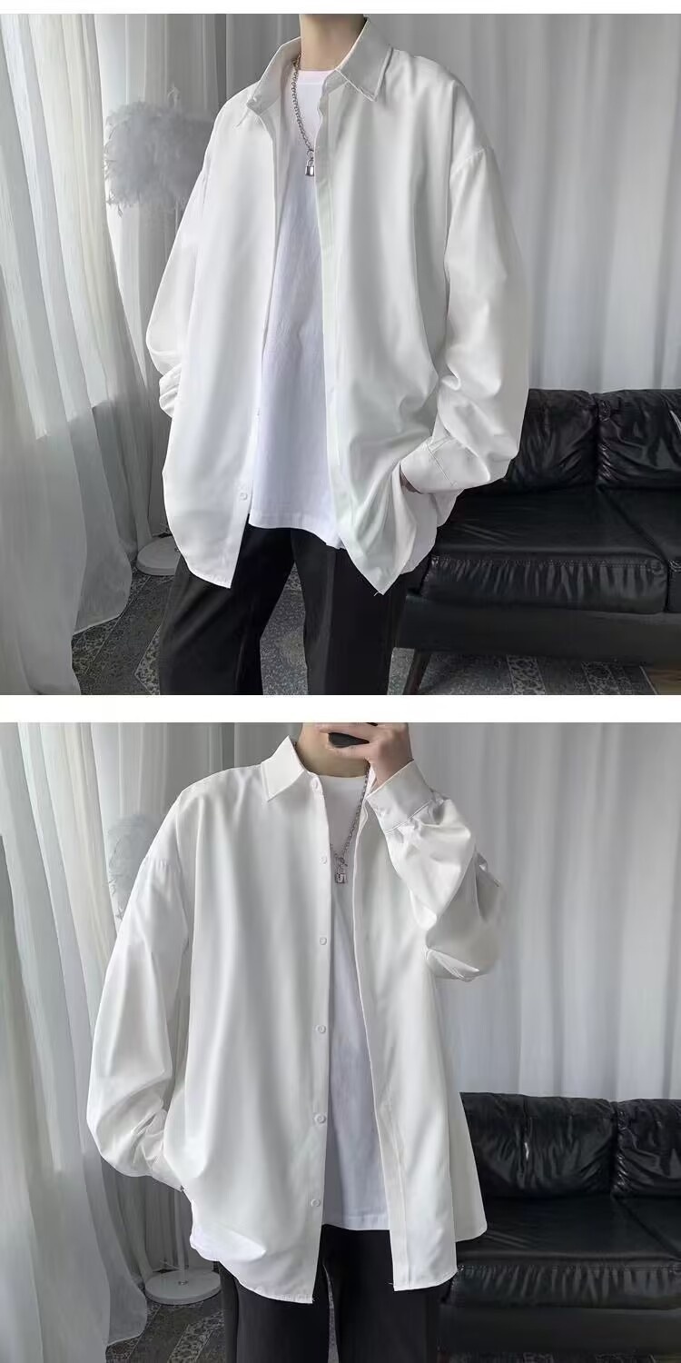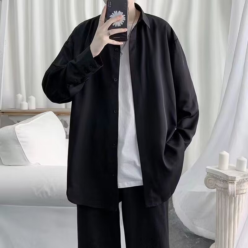 여름 긴 소매 아이스 실크 셔츠 남자의 한국 스타일 느슨한 얇은 셔츠 유행 새로운 스타일 더피 슈아이 잘 생긴 재킷 캐주얼스토어 가기