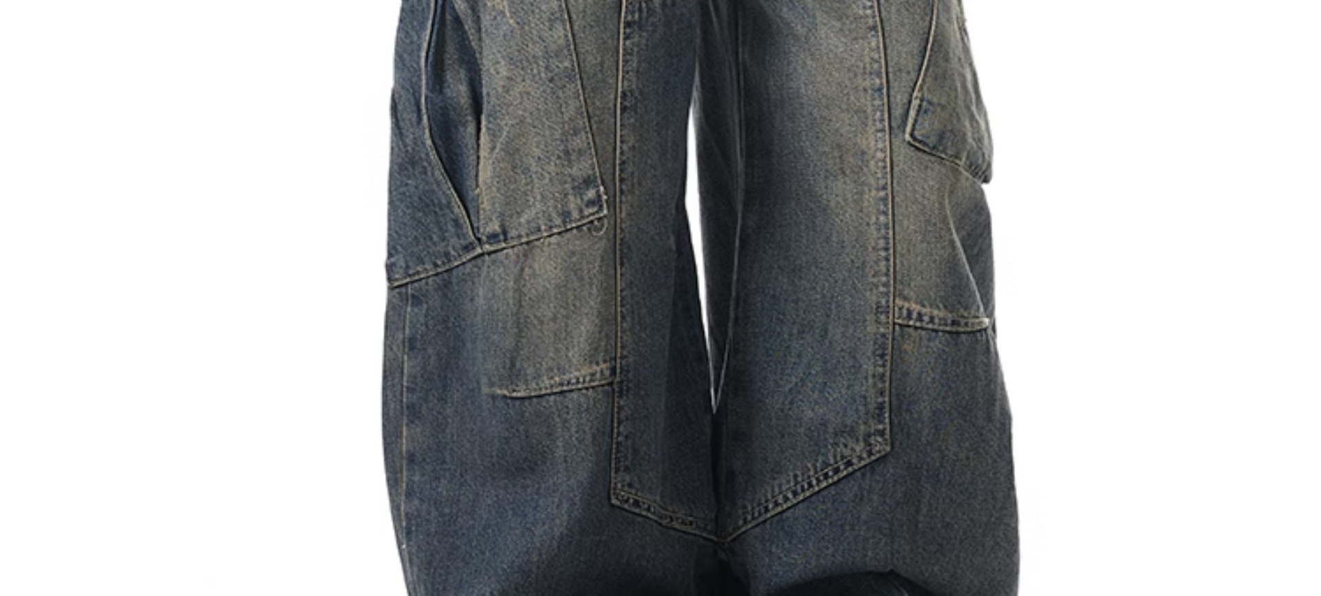 빈티지 세탁 된 오래된 멀티 포켓 Machete Jeans Unisex Loose Straight-Leg Baggy 오버롤스토어 가기