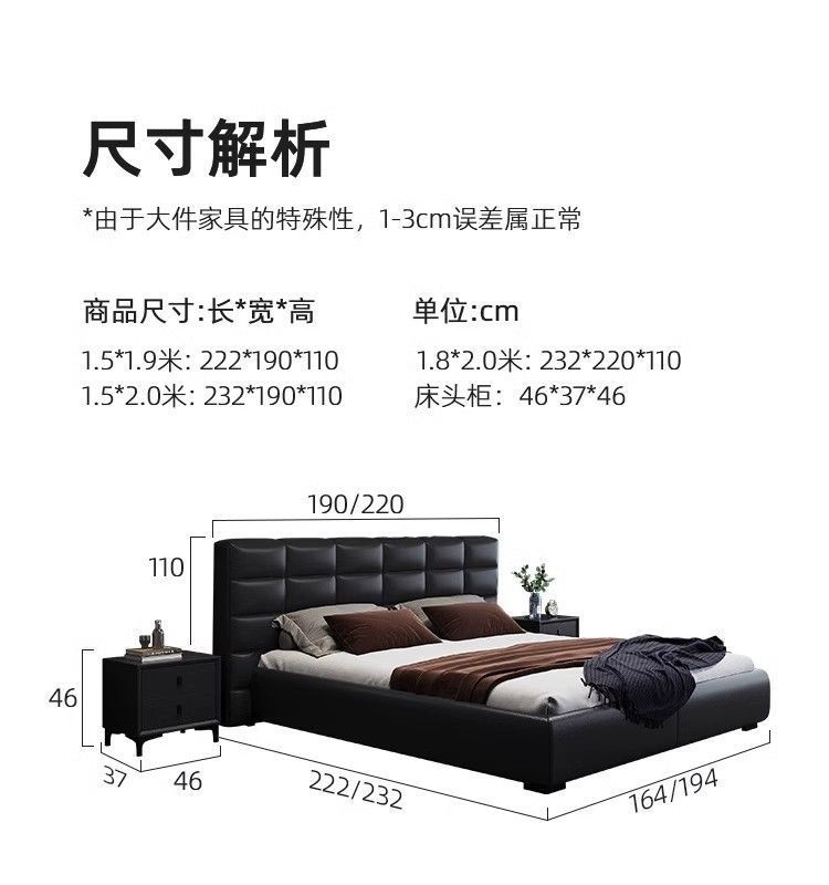 • 가죽 침대 + 고중량 항균 매트리스 + 침대 옆 탁자 2