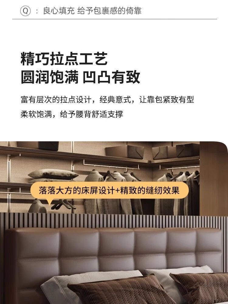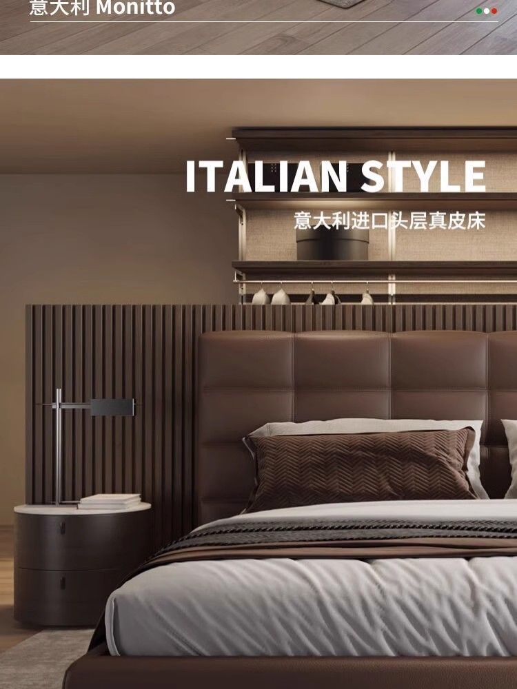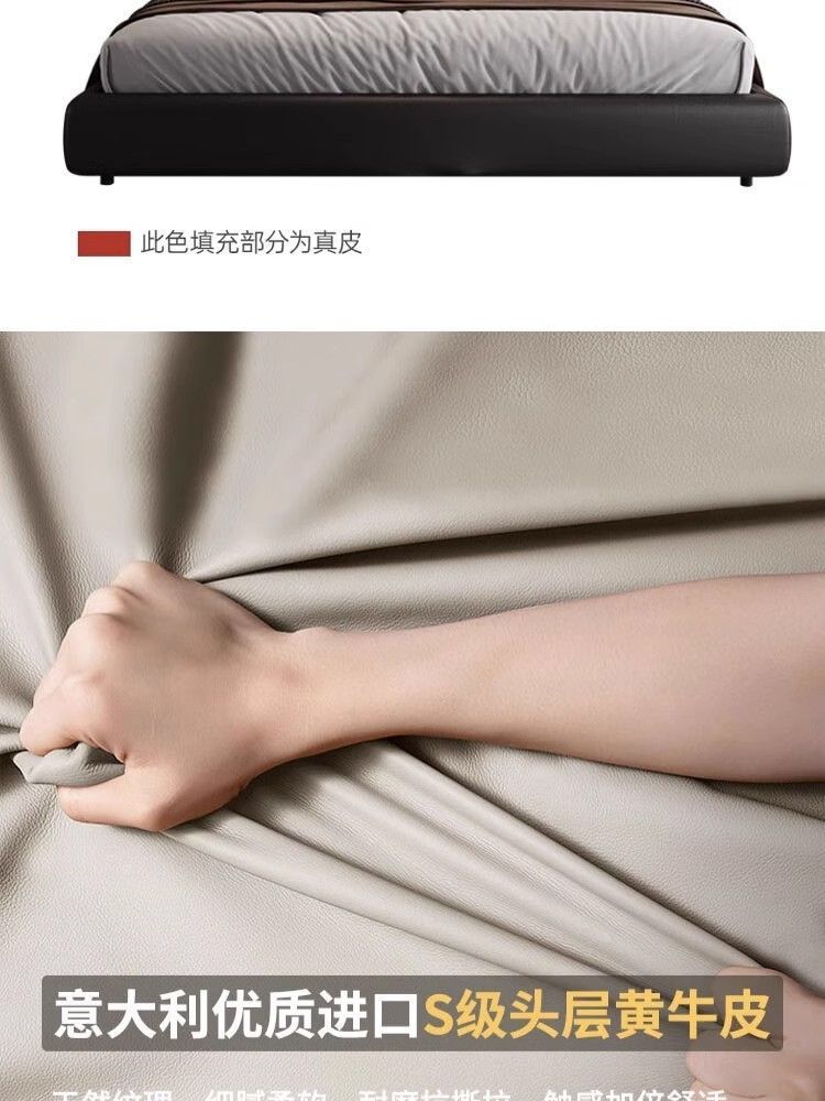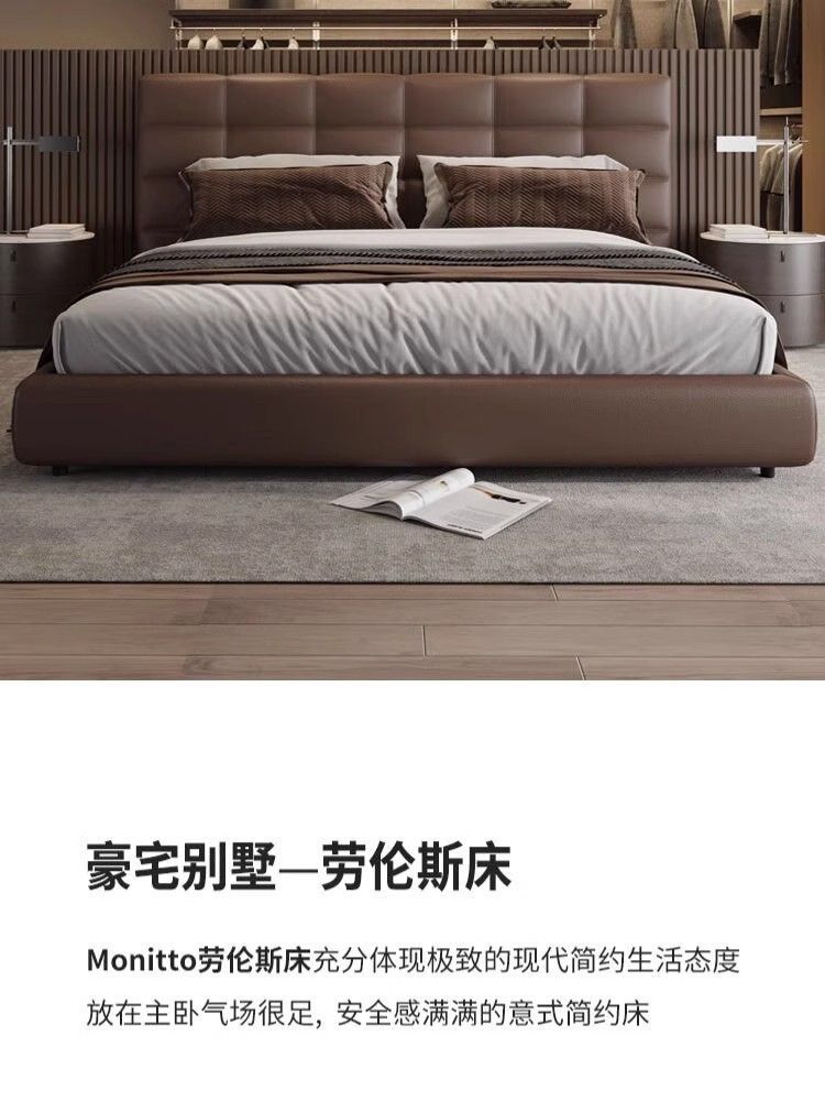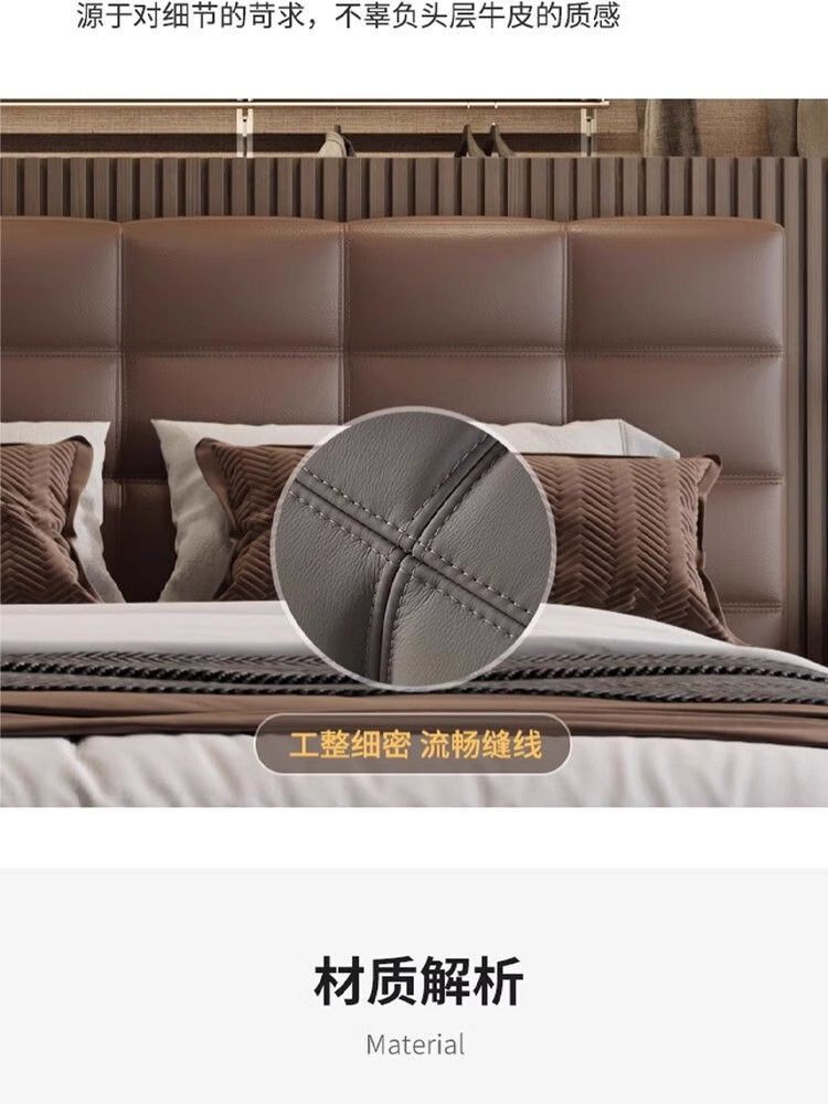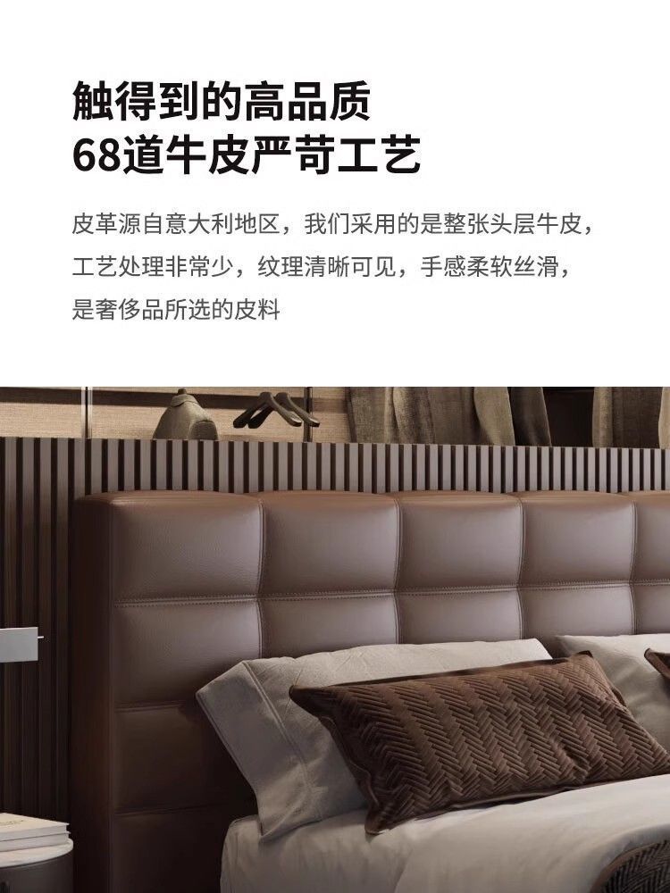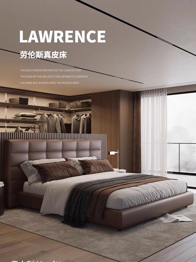 이탈리아 스타일 미니멀리스트 로렌스 가죽 침대 마스터 침실 하이 엔드 대기 현대 간단한 가벼운 럭셔리 더블 웨딩 침대 소프트 백 가죽 침대스토어 가기