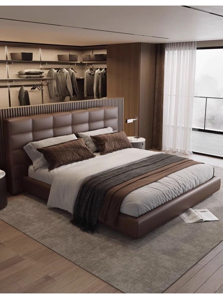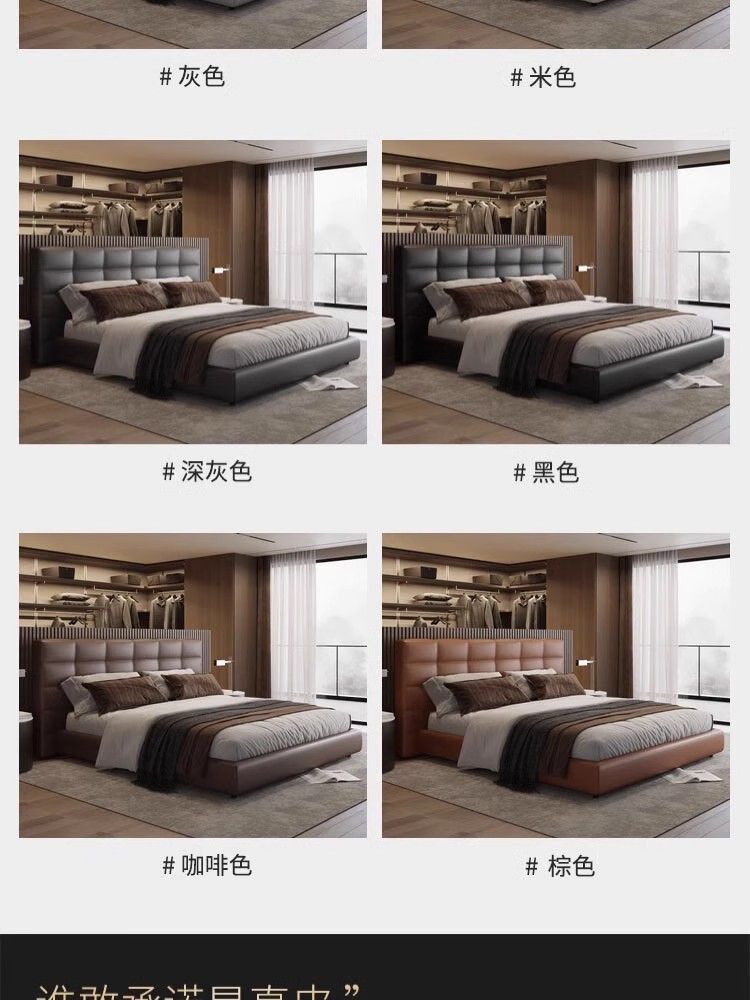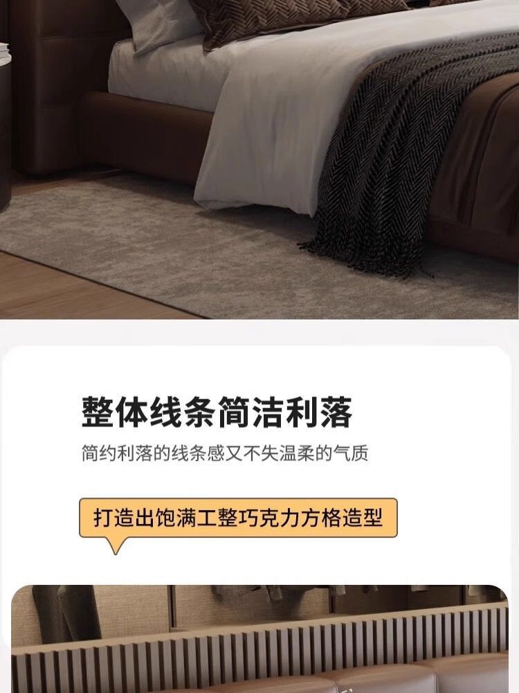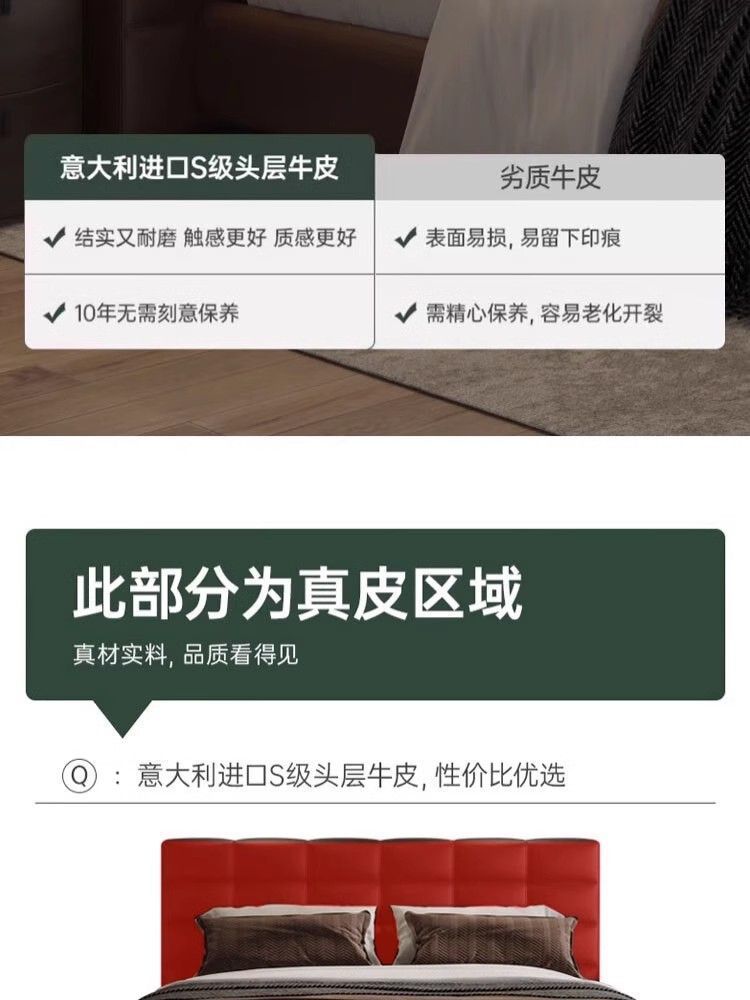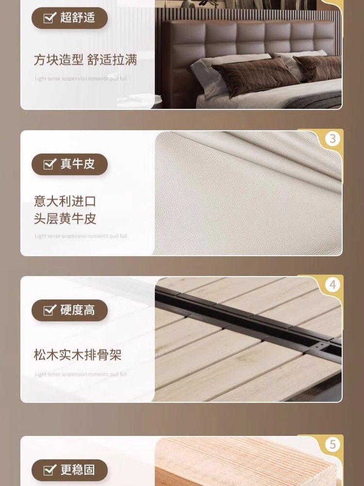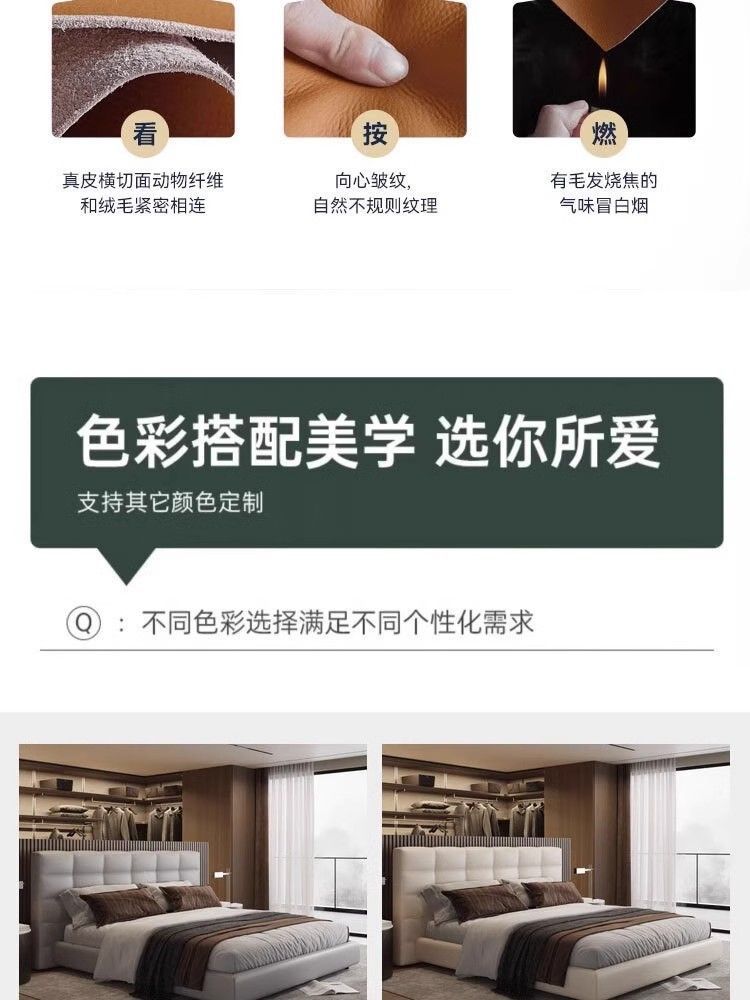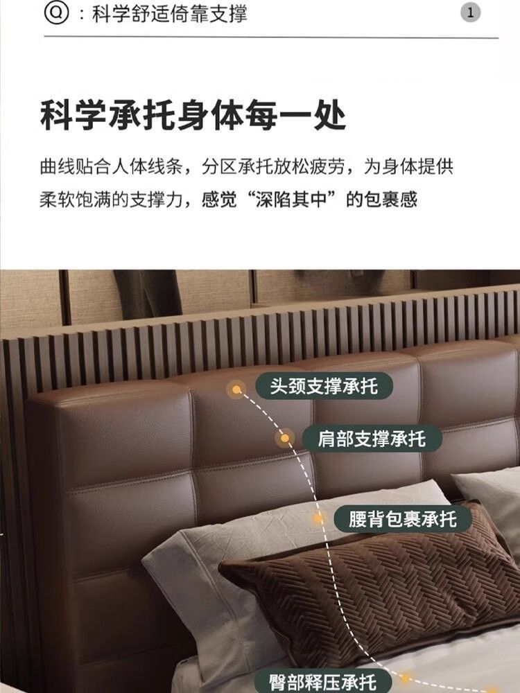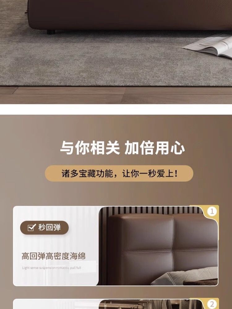 이탈리아 스타일 미니멀리스트 로렌스 가죽 침대 마스터 침실 하이 엔드 대기 현대 간단한 가벼운 럭셔리 더블 웨딩 침대 소프트 백 가죽 침대스토어 가기