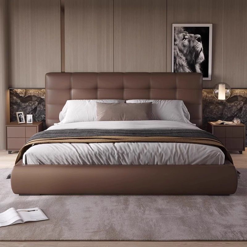 이탈리아 스타일 미니멀리스트 로렌스 가죽 침대 마스터 침실 하이 엔드 대기 현대 간단한 가벼운 럭셔리 더블 웨딩 침대 소프트 백 가죽 침대