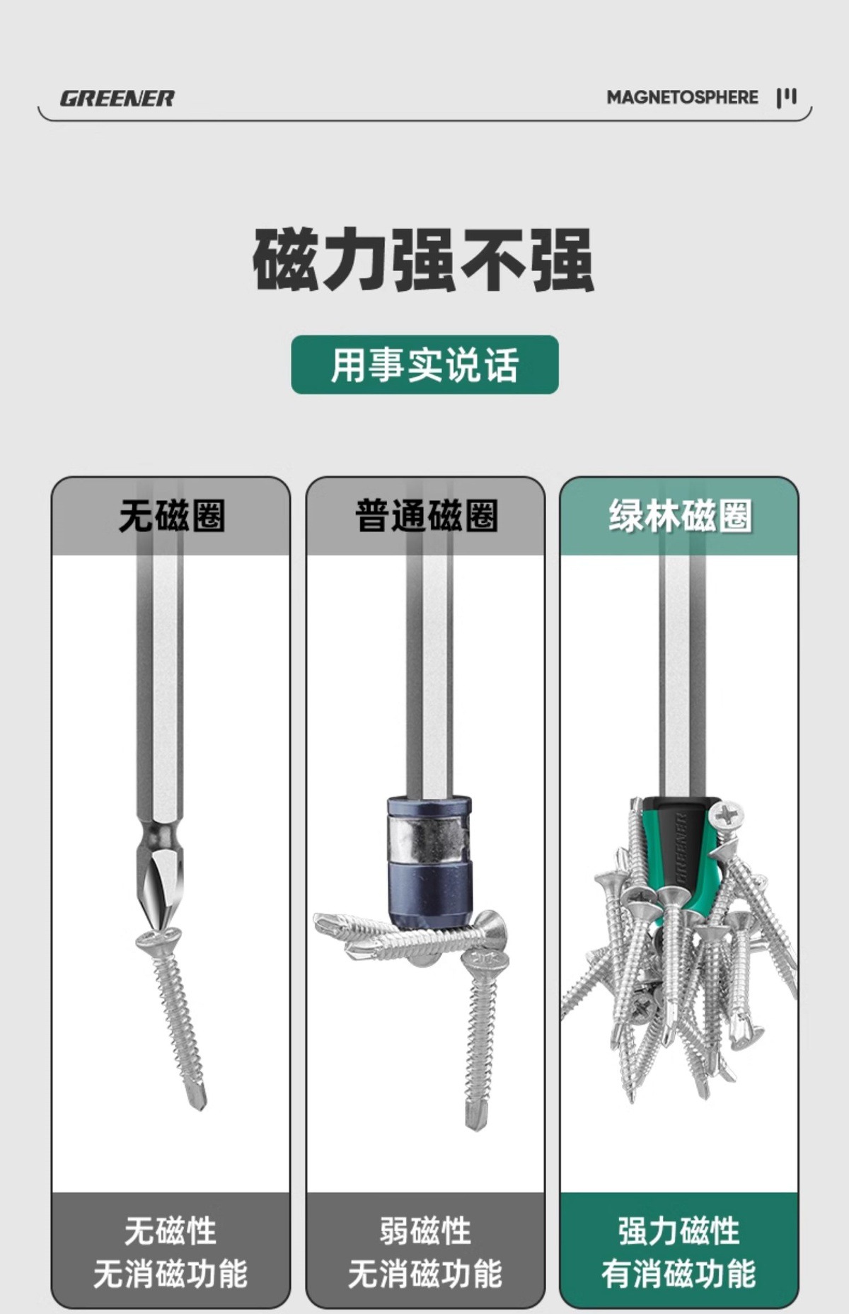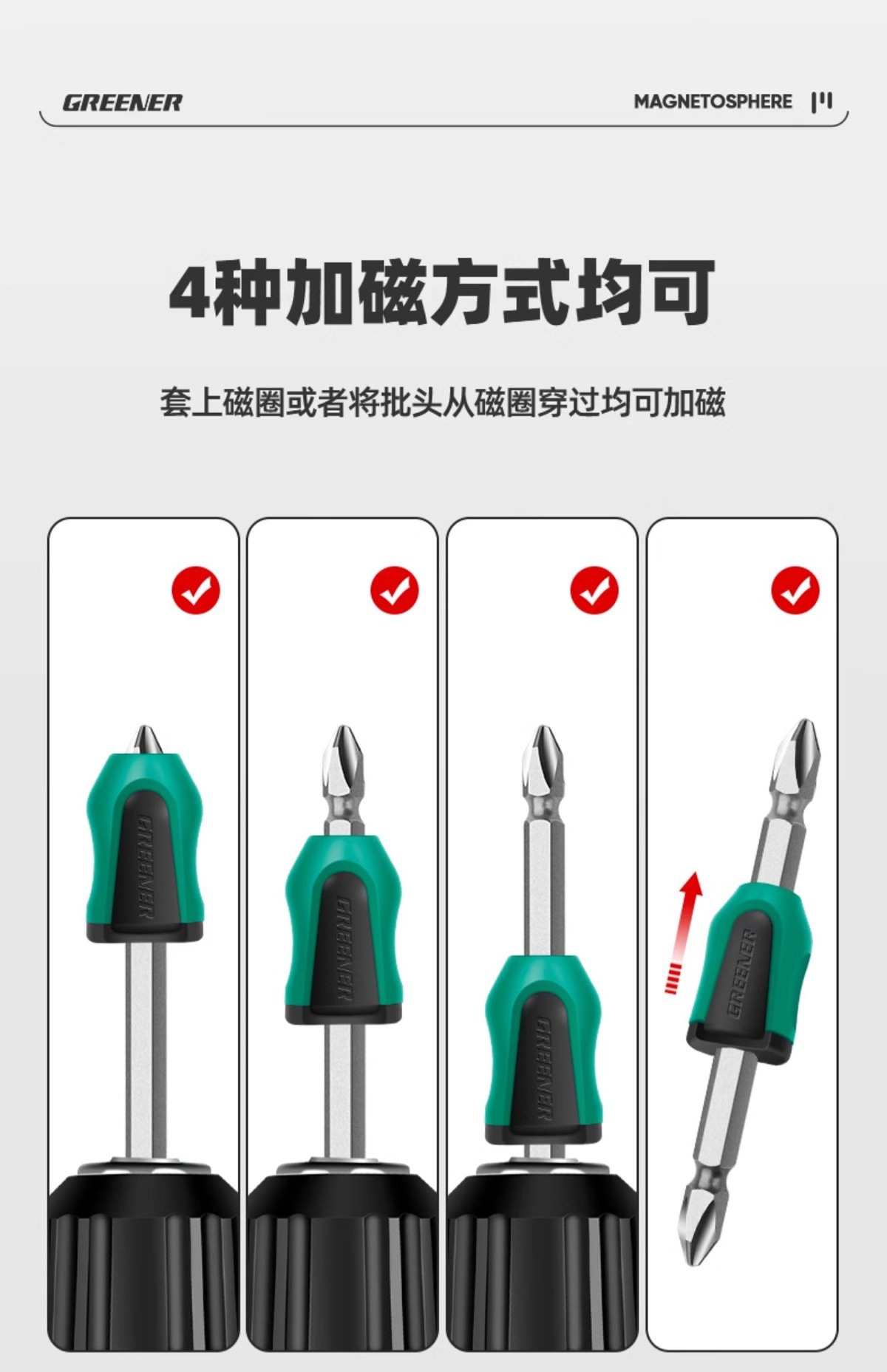 Greenforest 마그네틱 링 배치 헤드 강한 마그네틱 자석 크로스 배치 헤드 안티 슬립 자성기 demagnetizing 전기 스크루 드라이버 비트스토어 가기