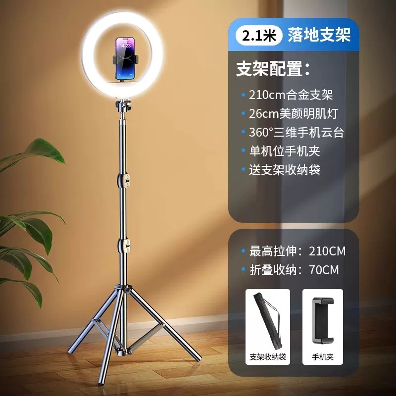 • 2.1m 플로어 스탠딩 모델 [그림자 없는 생방송/사진] 26cm 뷰티램프 + 사진 리모콘