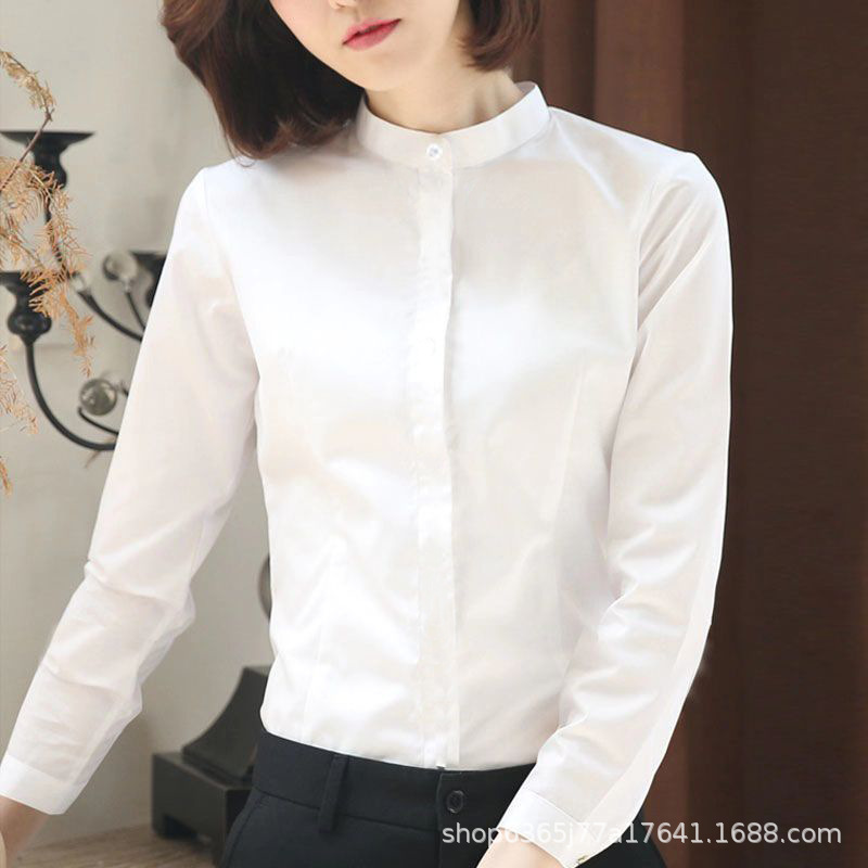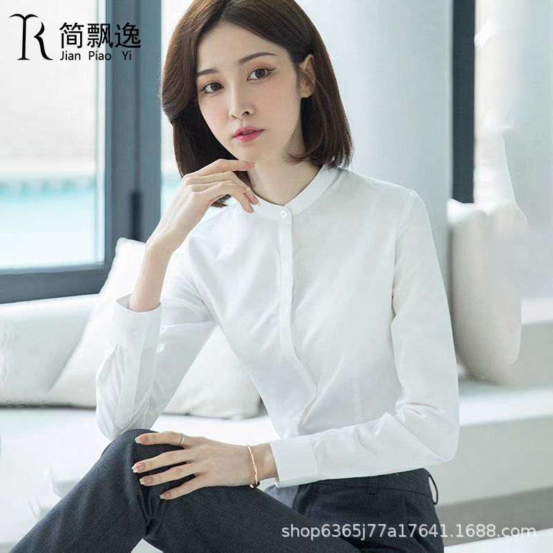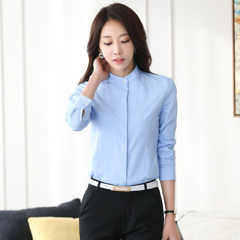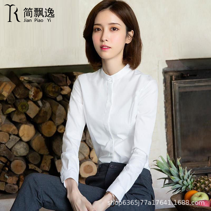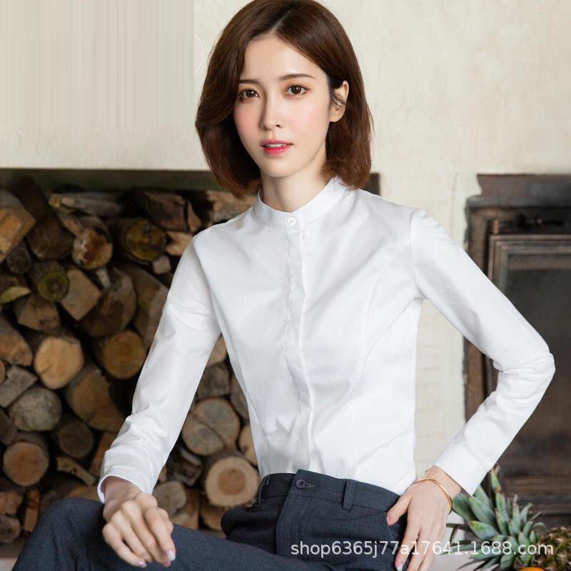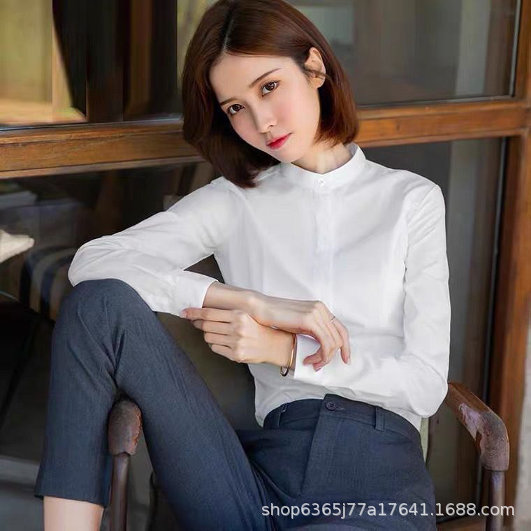 여성용 긴팔 셔츠, 오피스룩, 작은 스탠드 칼라, 캐주얼, 신선하고 세련된 스타일, 슬림핏, 다용도, 한국 스타일, 이너웨어 또는 아우터웨어스토어 가기