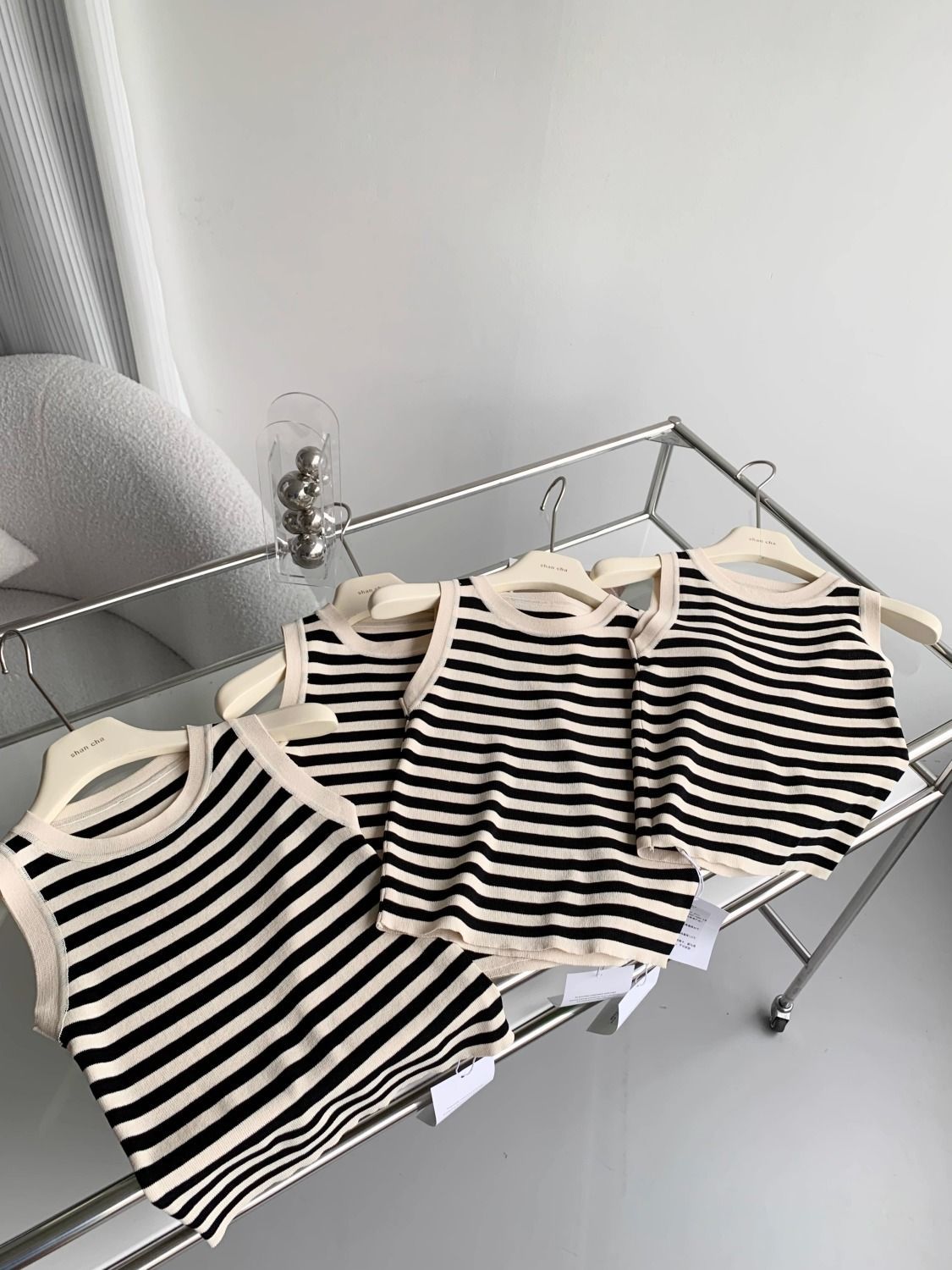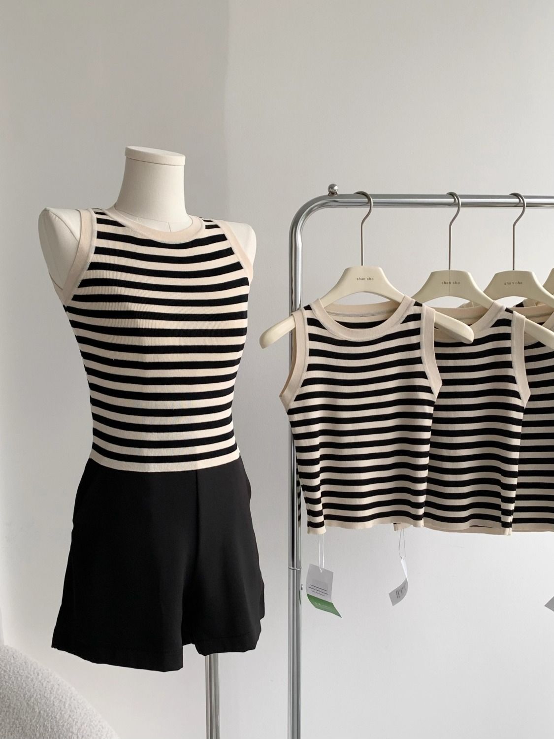 아이스 실크 스트라이프 니트 조끼 여성 여름 2025 새로운 슬림 핏 짧은 민소매 이너 탑 스파이스 소녀 슬링 아우터웨어스토어 가기