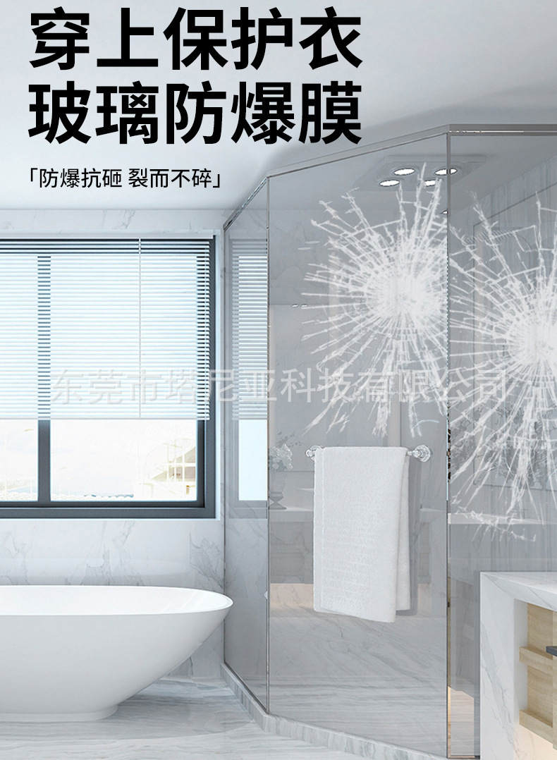 유리 폭발 방지 필름 도매 욕실 샤워 룸 강화 유리 필름 산산조각 방지 창문 유리 스티커