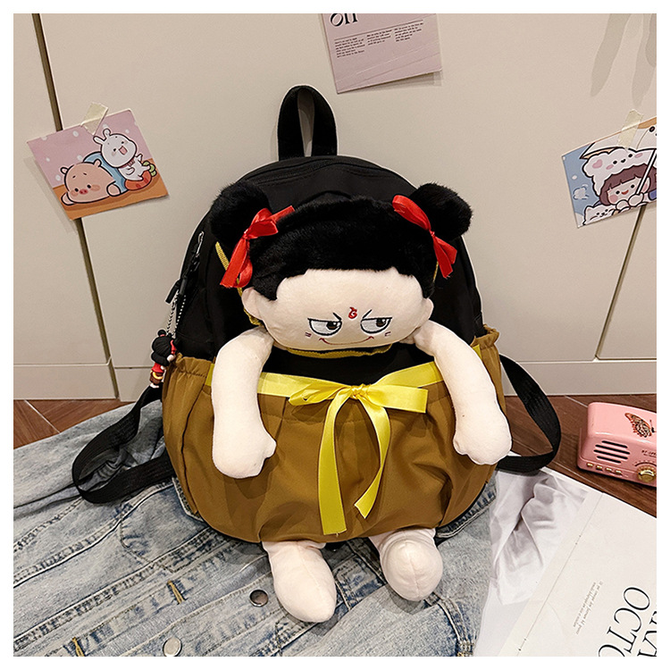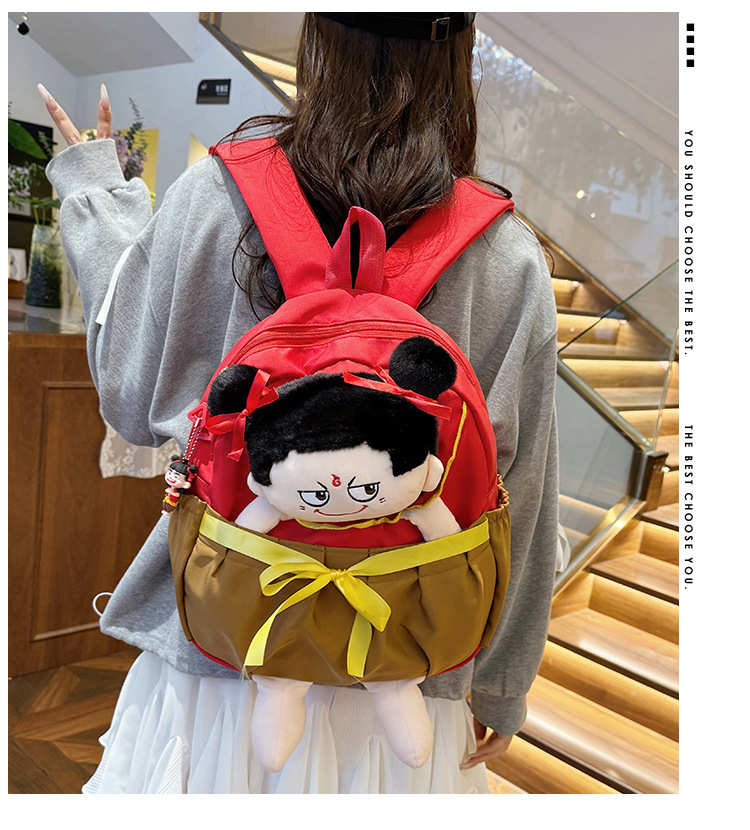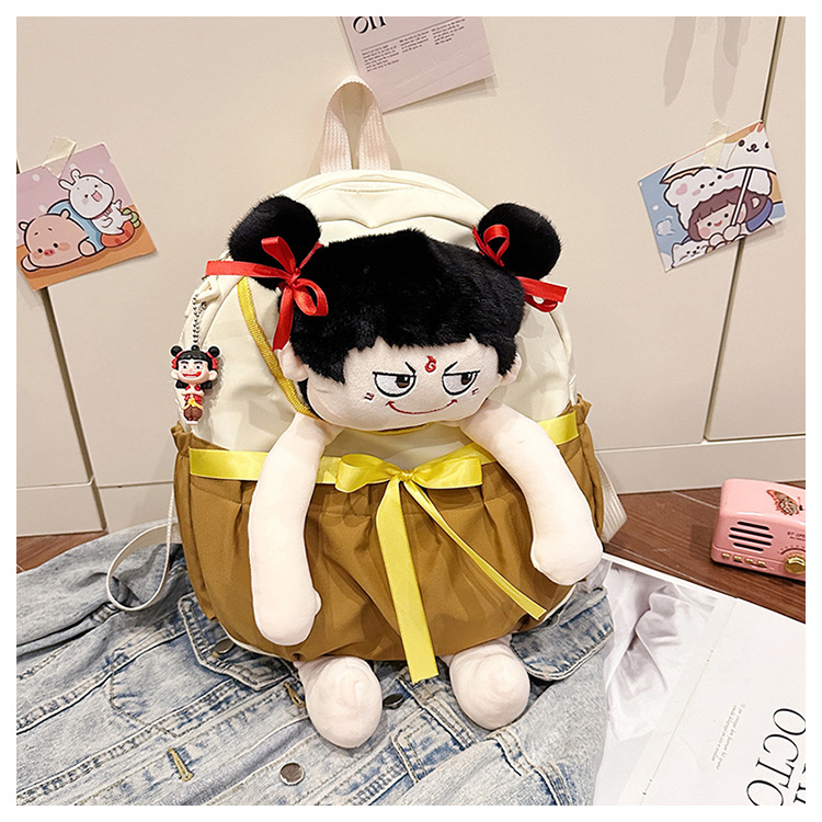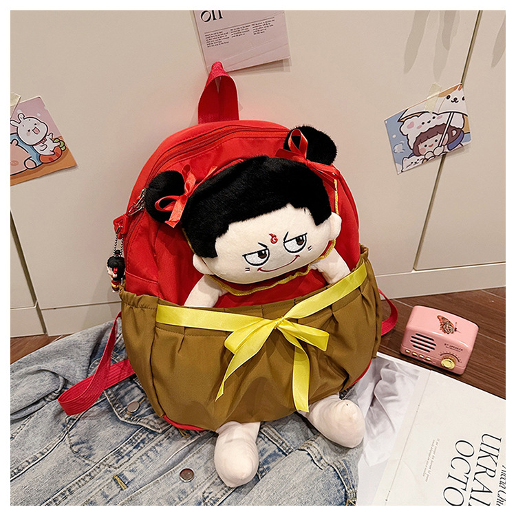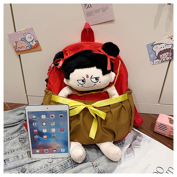 새로운 Nezha 인형 배낭 유치원 Schoolbag 대형 클래스 귀여운 봉제 가방 매직 어린이 인형 가방 어린이