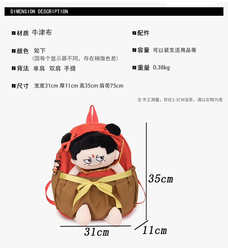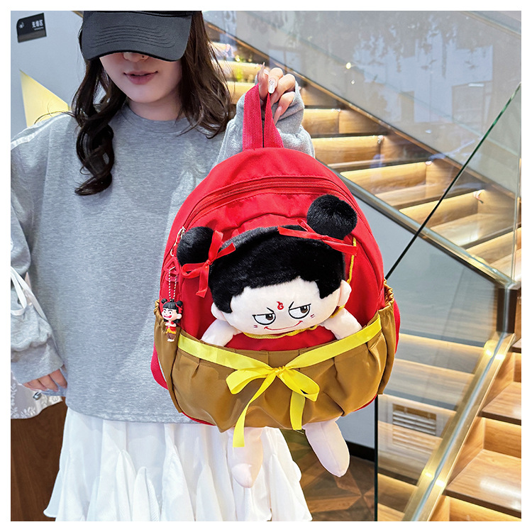 새로운 Nezha 인형 배낭 유치원 Schoolbag 대형 클래스 귀여운 봉제 가방 매직 어린이 인형 가방 어린이스토어 가기