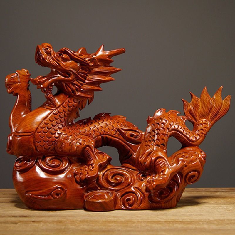 나무 공예 배 단단한 나무 조각 용 장식품 조디악 용 거실 장식 선물 우송료 세대스토어 가기