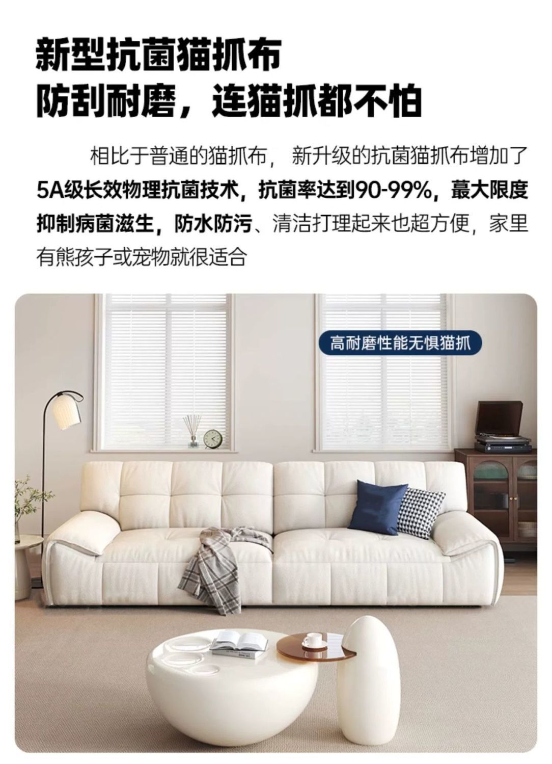 라이트 럭셔리 고양이 스크래치 패브릭 소파 현대 간단한 거실 스트레이트 로우 와이드 앉아 깊은 작은 아파트 크림 마시멜로 소파스토어 가기