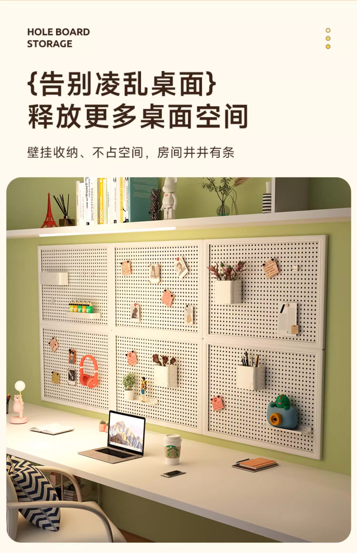 홀 보드 벽 저장 랙 기숙사 디스플레이 랙 유니버설 교수형 보드 학습 데스크 마감 보관 파티션 Zb