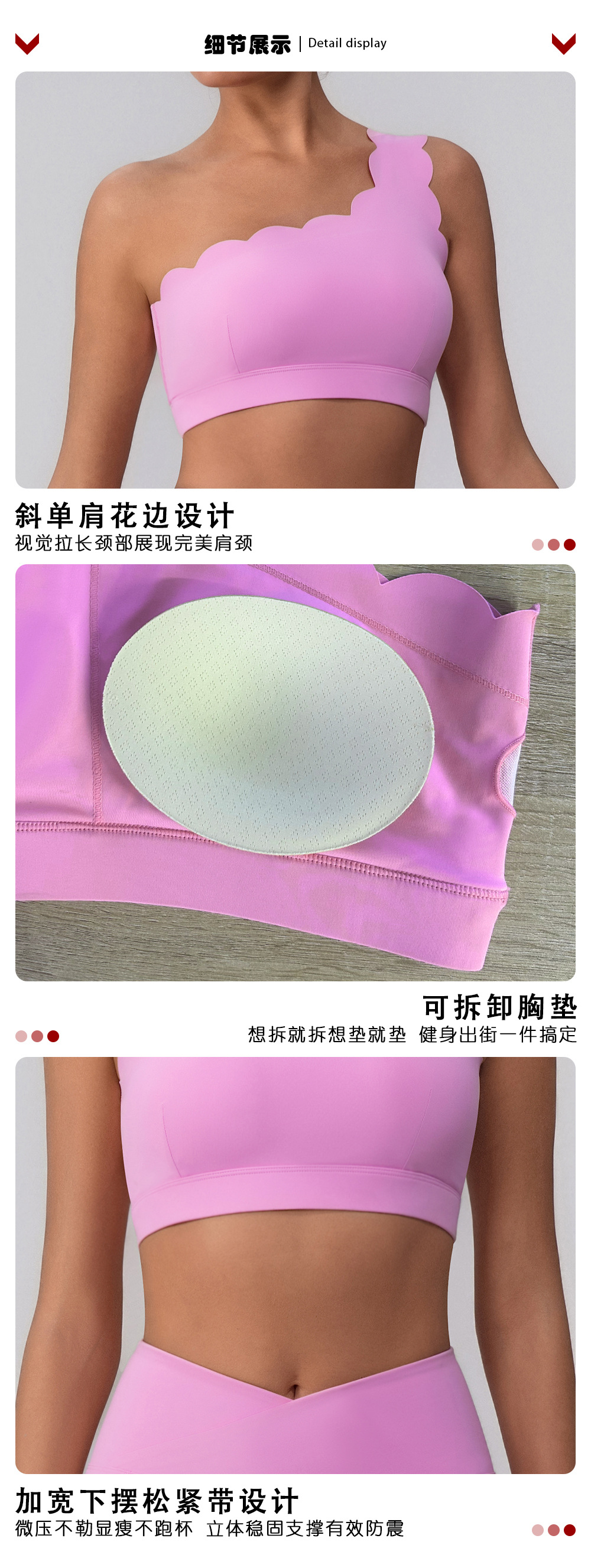 Yin Weiqi는 가슴 패드 레이스 요가 탑 충격 방지 빠른 건조 피트니스 조끼 싱글 어깨 스트랩 스포츠 브래지어와 센스