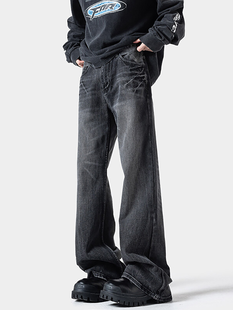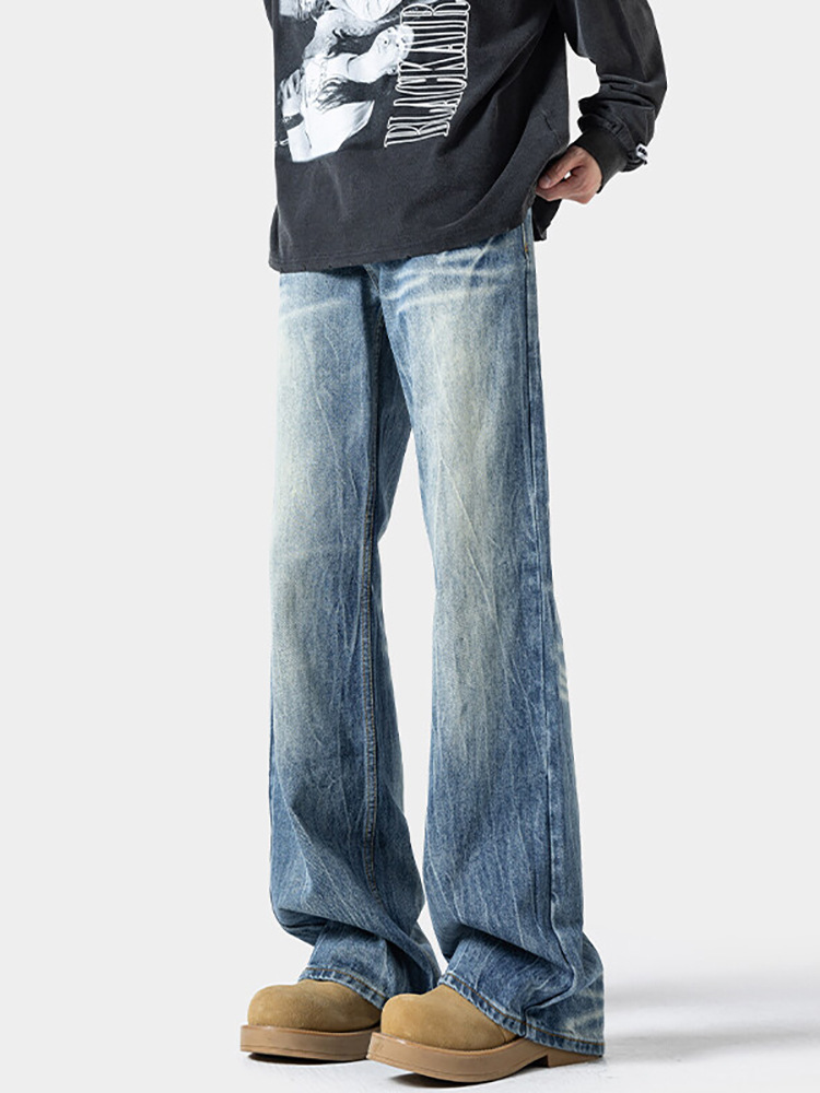 남성용 번개 패턴 마이크로 플레어 청바지 2025 봄 신작 아메리칸 레트로 워시 대형 루즈 스트레이트 롱 팬츠