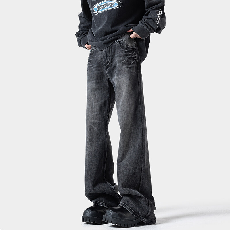 남성용 번개 패턴 마이크로 플레어 청바지 2025 봄 신작 아메리칸 레트로 워시 대형 루즈 스트레이트 롱 팬츠스토어 가기