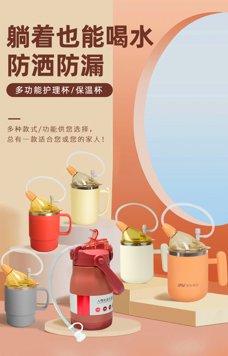 병상에 누워있는 환자를 위한 간호컵, 노인들이 마시는 질식 방지 빨대컵, 마비된 임산부, 누워있는 액체식품, 누수 방지 보온병스토어 가기